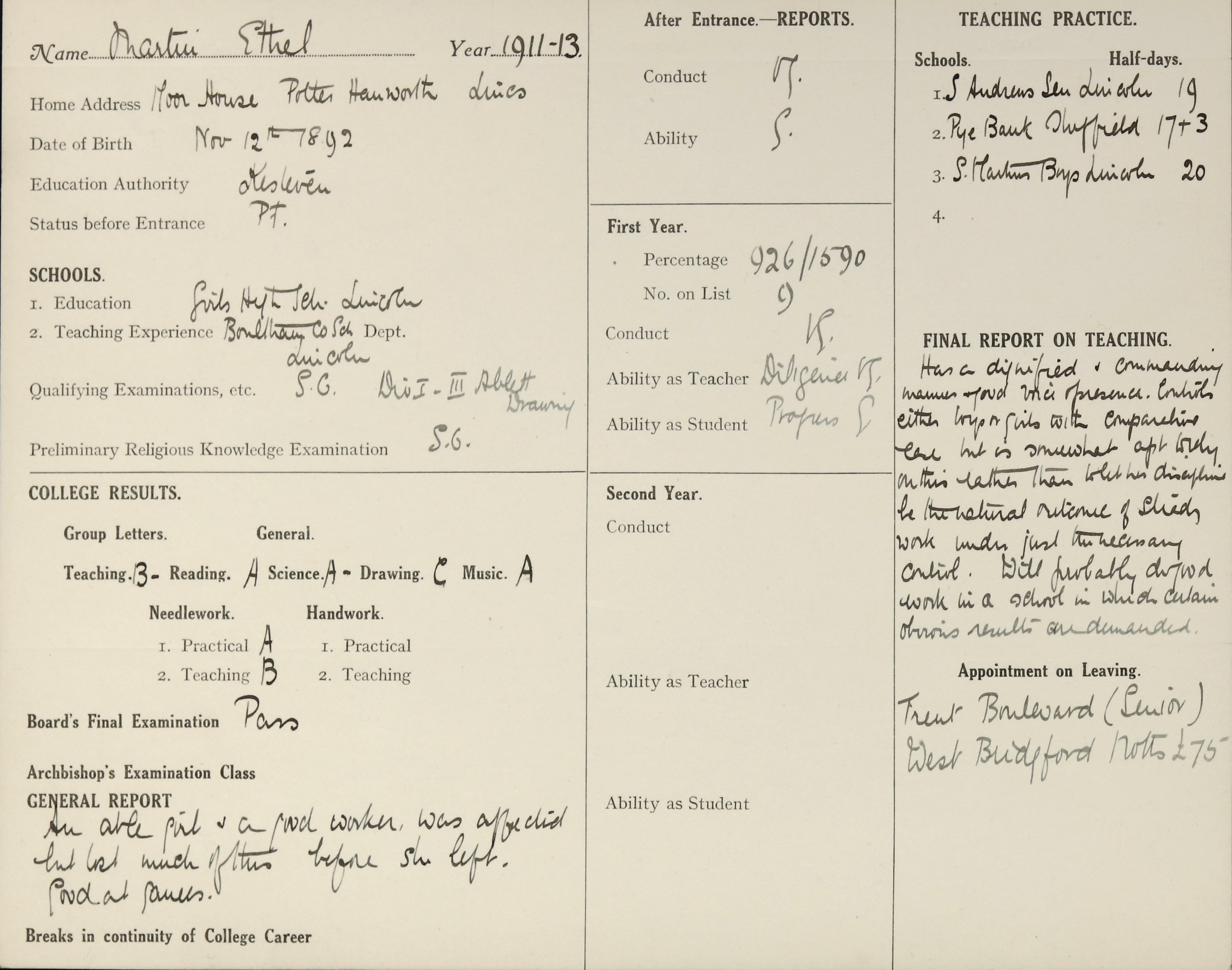 She is at Potter Hanworth, Lincoln. Her stepmother and half-sisters, Florence and Emma, are unlisted. Ethel is listed as ‘Pupil Teacher’.