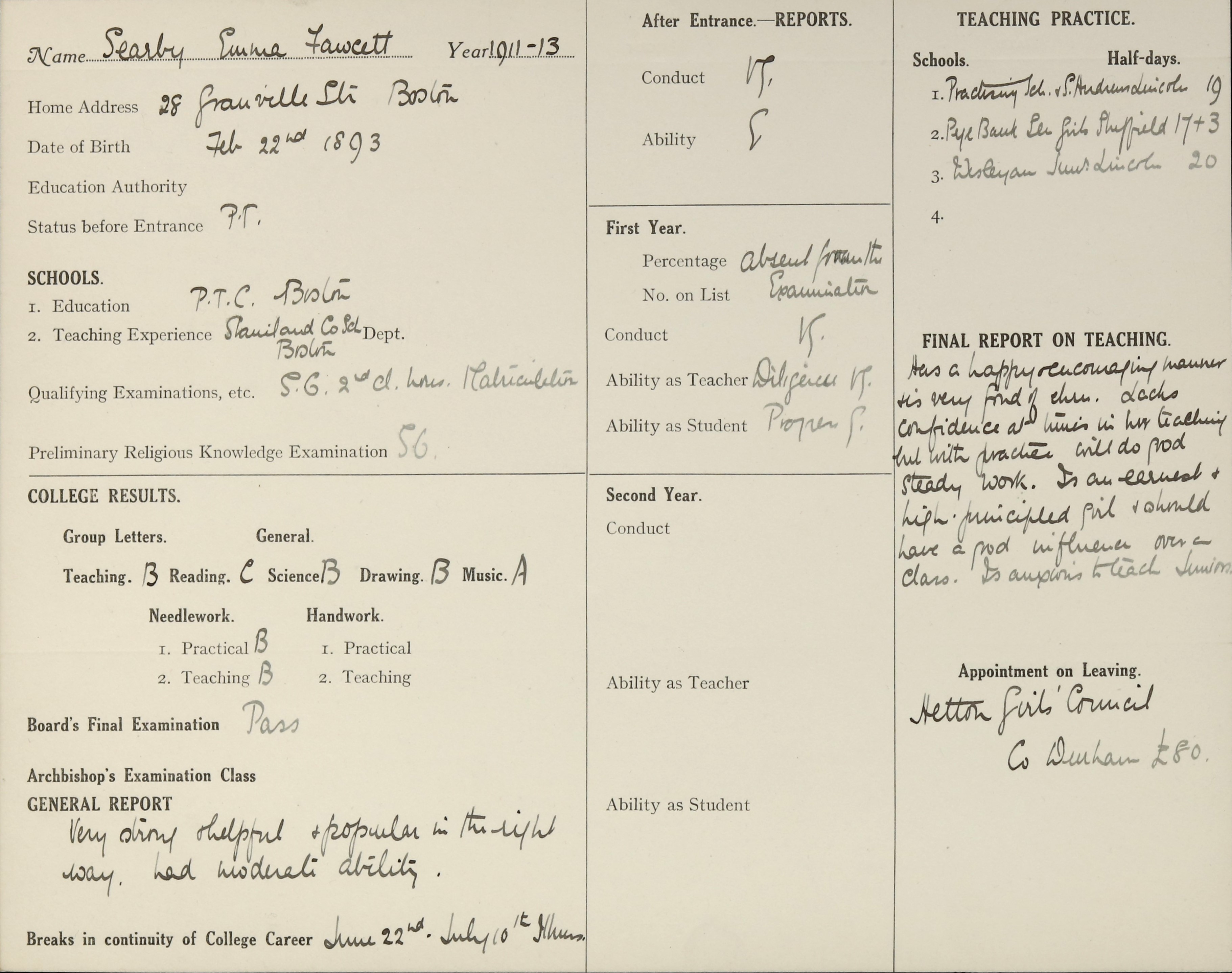 Appointed to Hetton Girls' Council School, Co. Durham. £80.