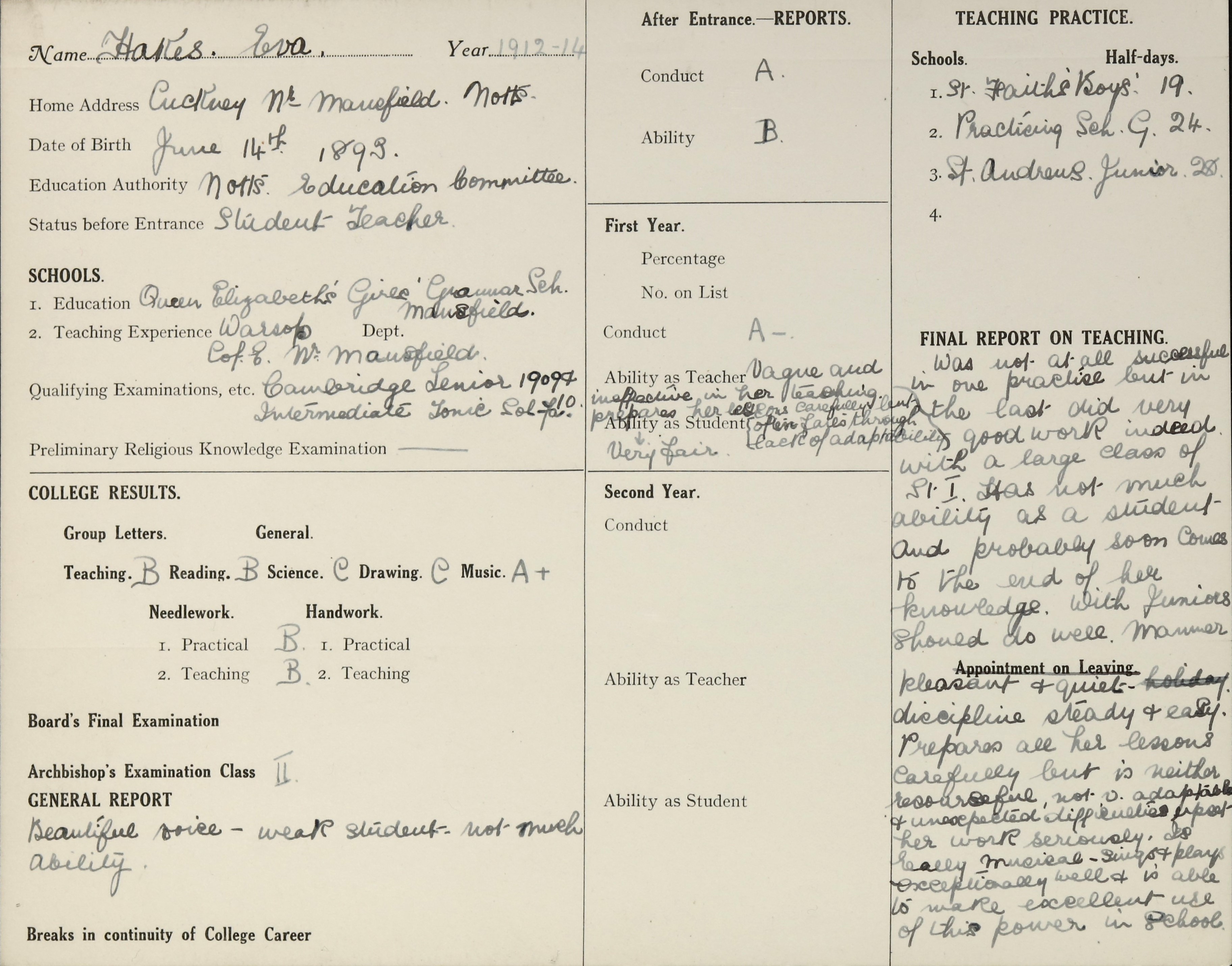 Born: 14 June 1893, Worksop