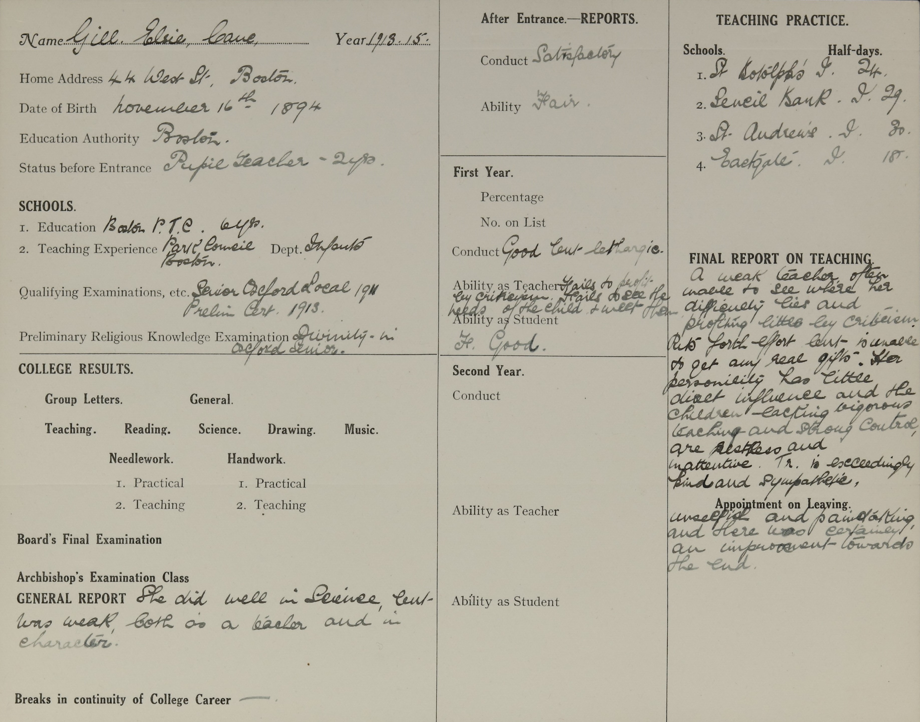 Qualification: Oxford Sen. 1911, Prelim. Cert. Exam. 1913.