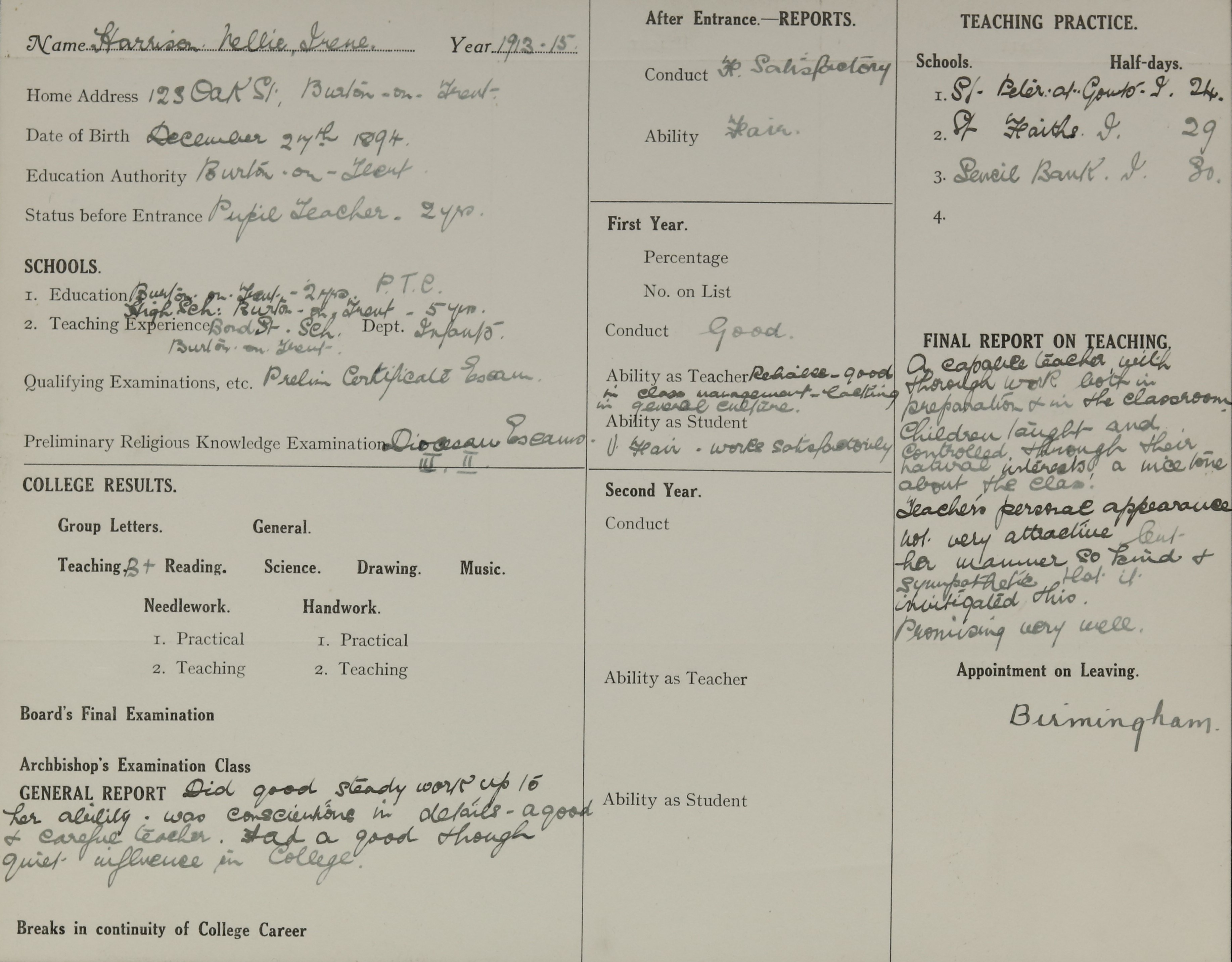 Born: 27 December 1894, Burton upon Trent
