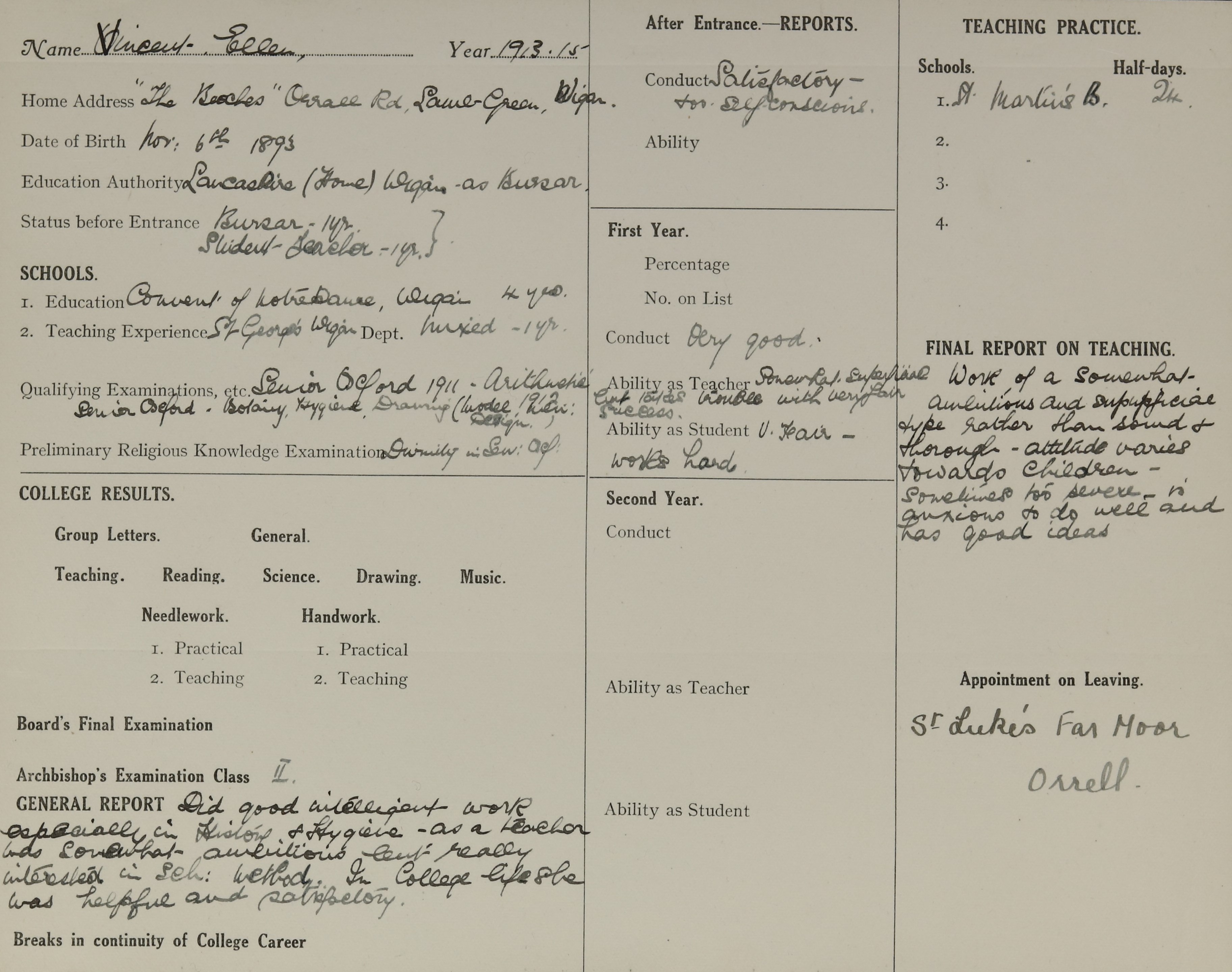 Qualification: Oxford Senior Local 1911.