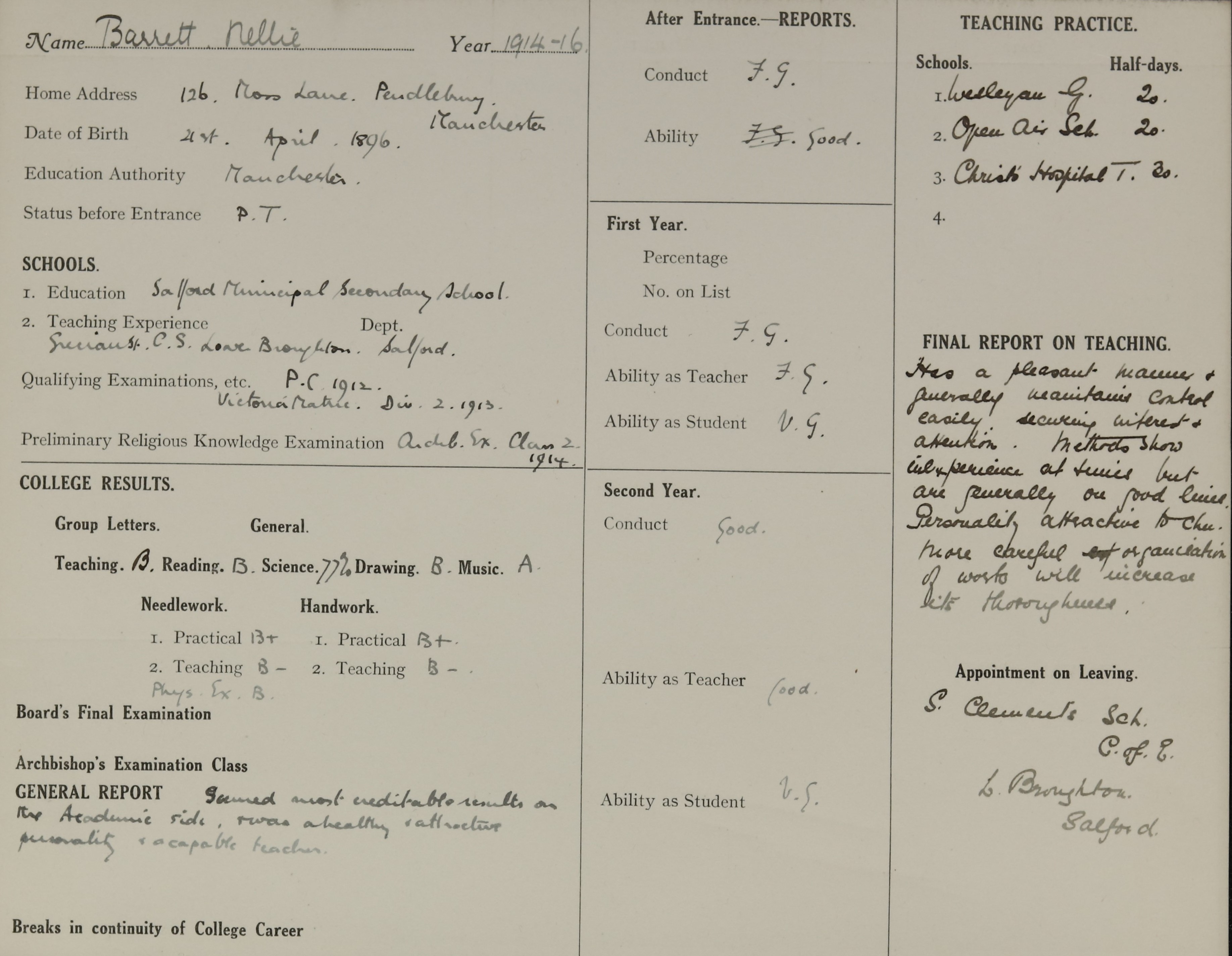 Appointed to St. Clements, C. E. Lower Broughton, Salford.