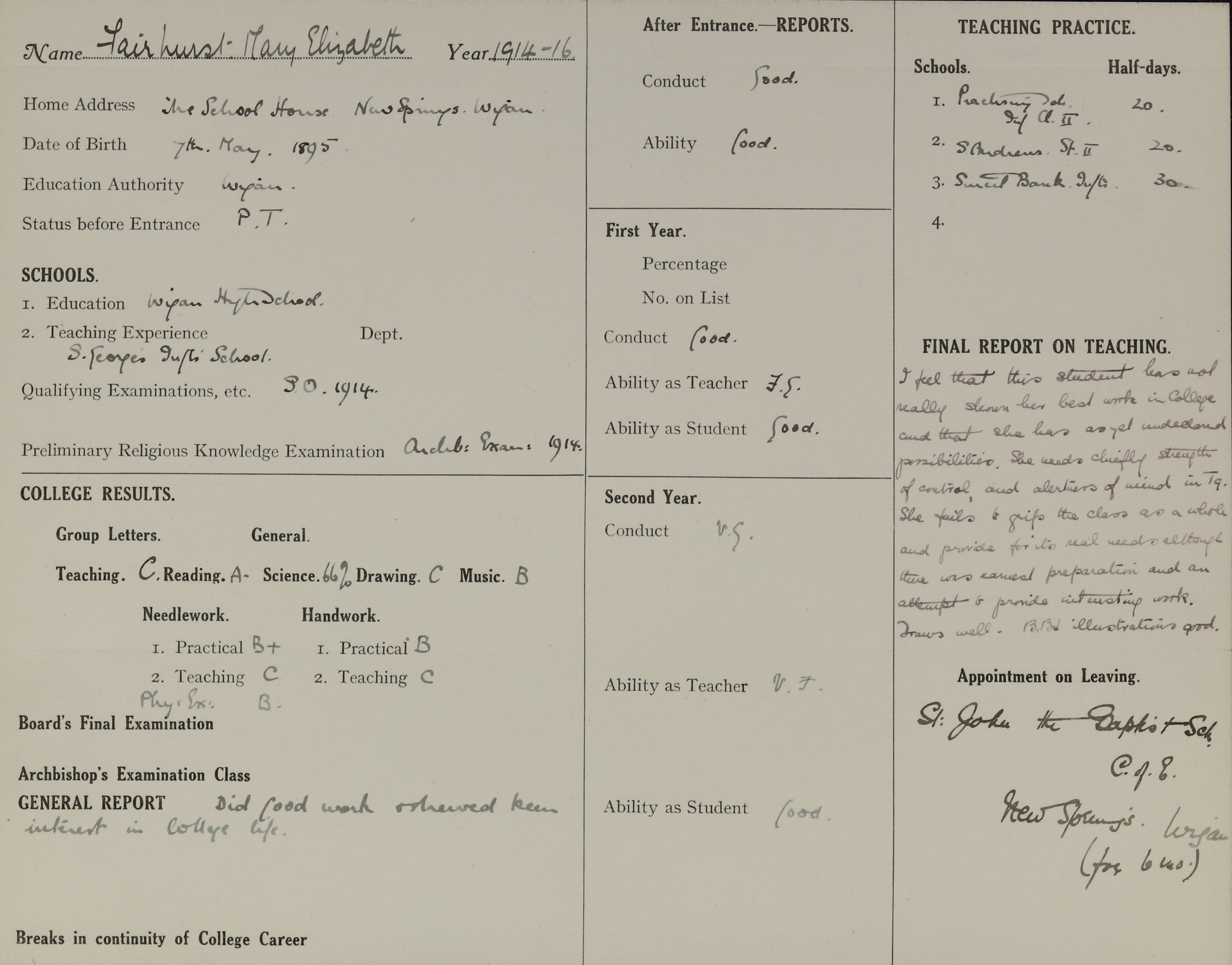 Born: 7 May 1895, Wigan
