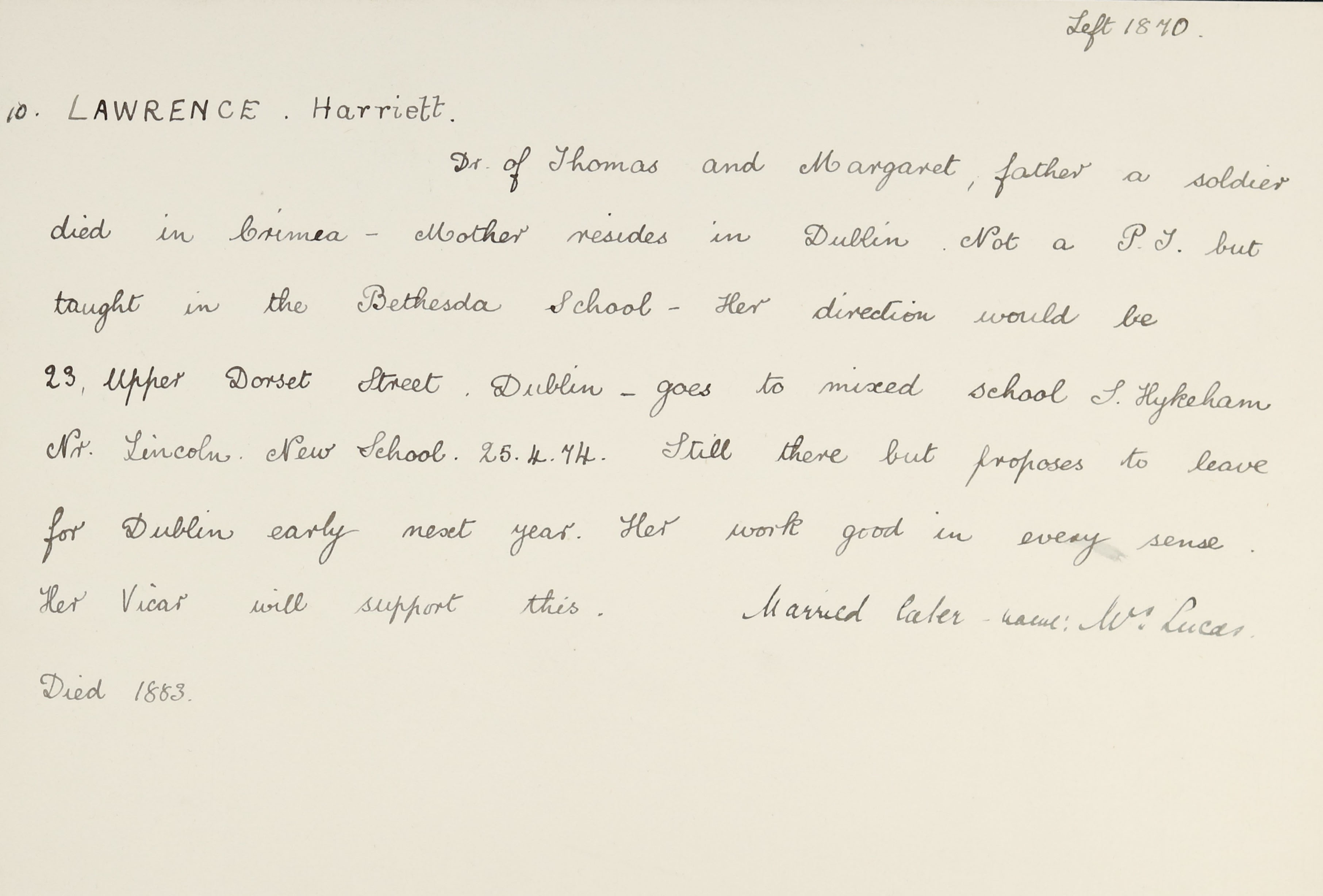Father: Thomas Lawrence (died in Crimean War)