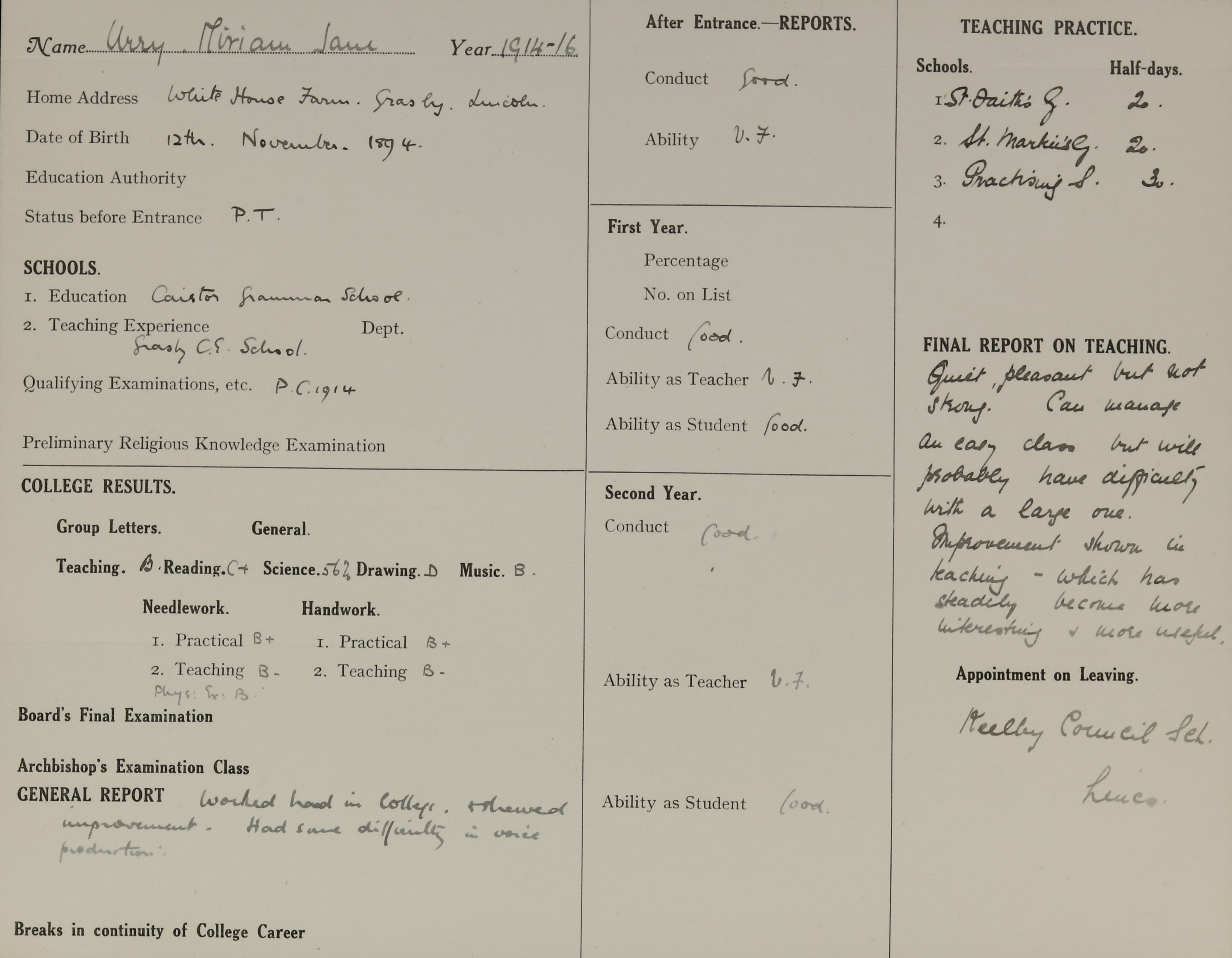 Born: 12 November 1894, Caistor