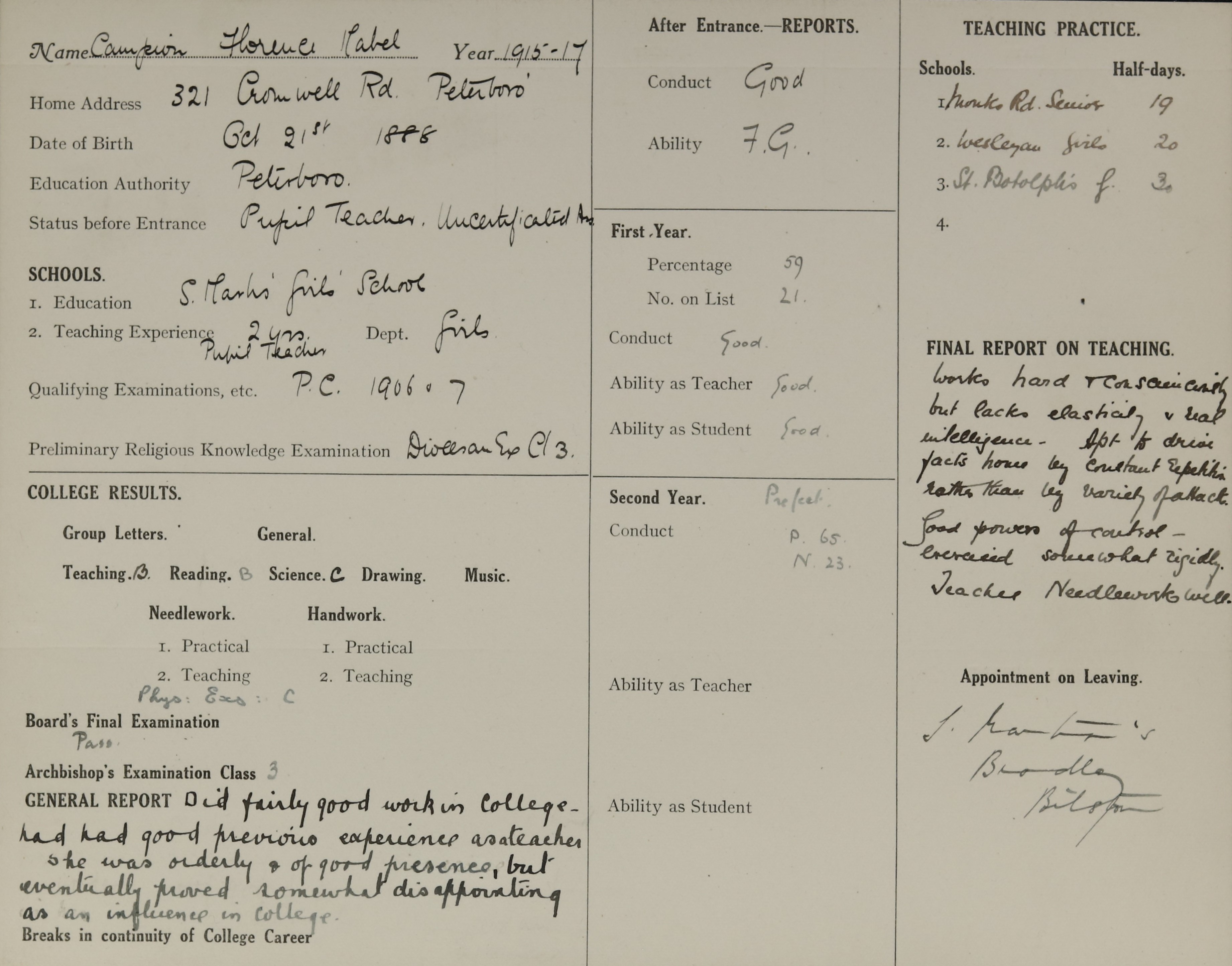 Born: 21 October 1888, Peterborough