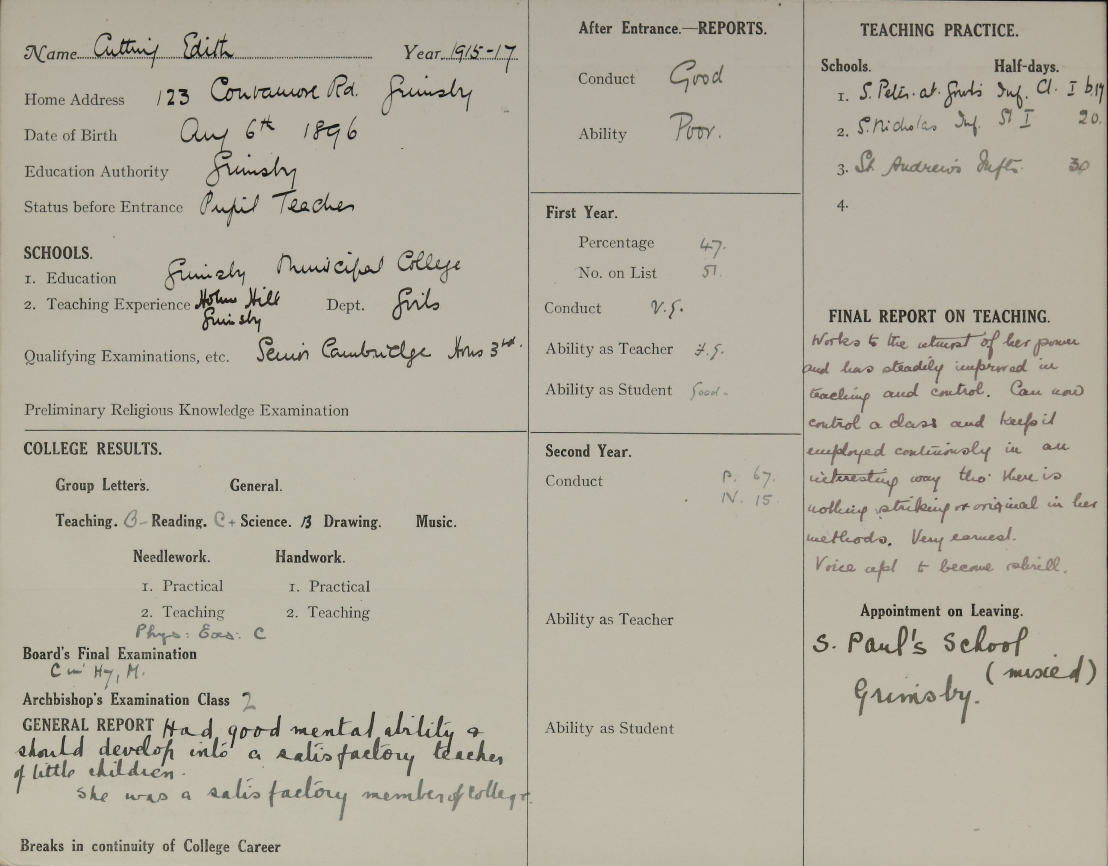 Appointed to St. Paul's Schools (Mixed), Grimsby.