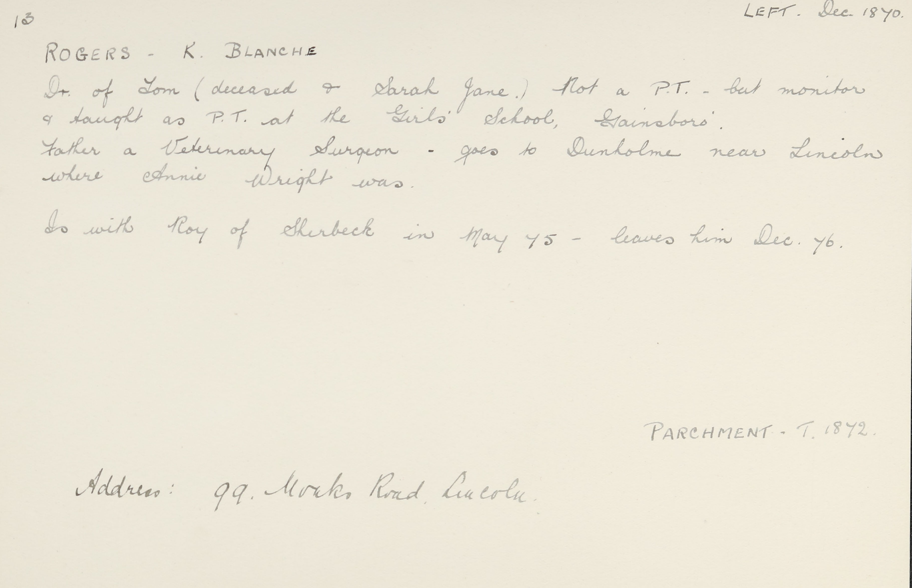She is at Willoughby Street, Gainsborough. Her mother is listed as ‘schoolmistress’. Blanche is unlisted.