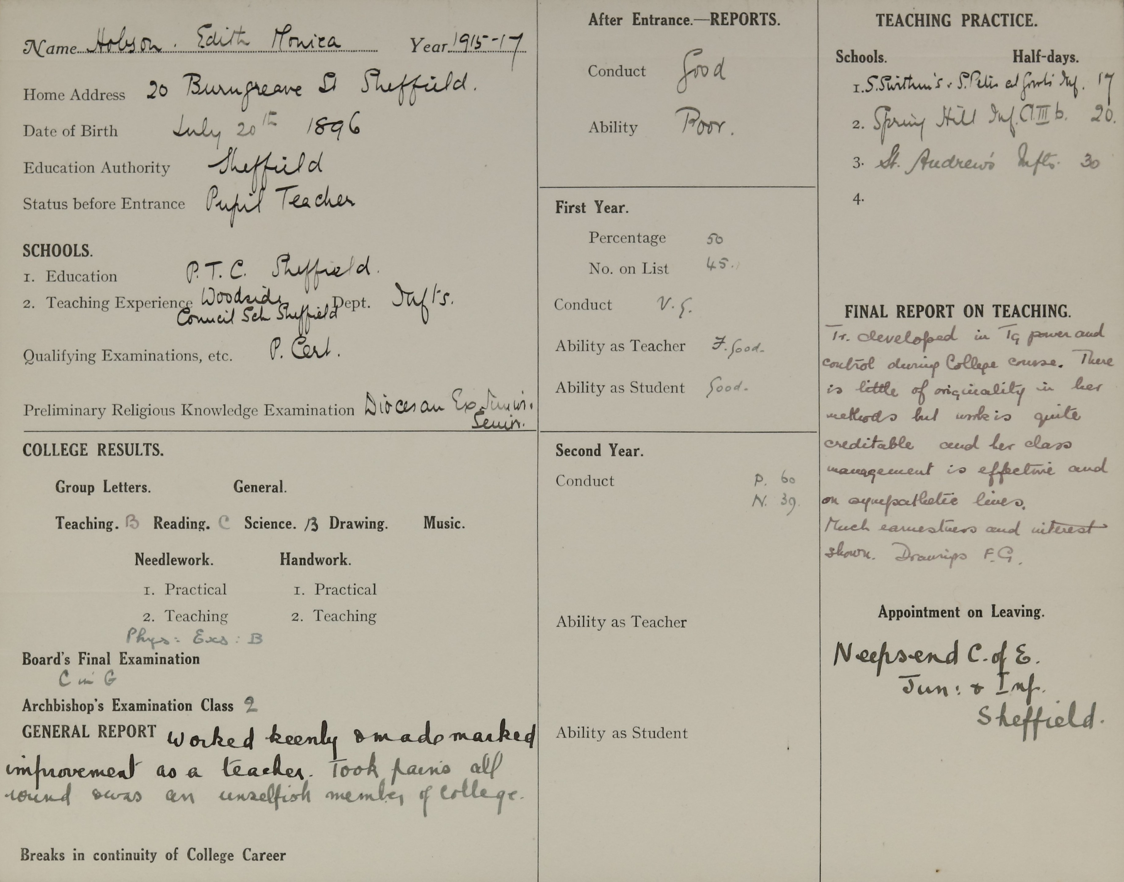 Born: 20 July 1896, Sheffield