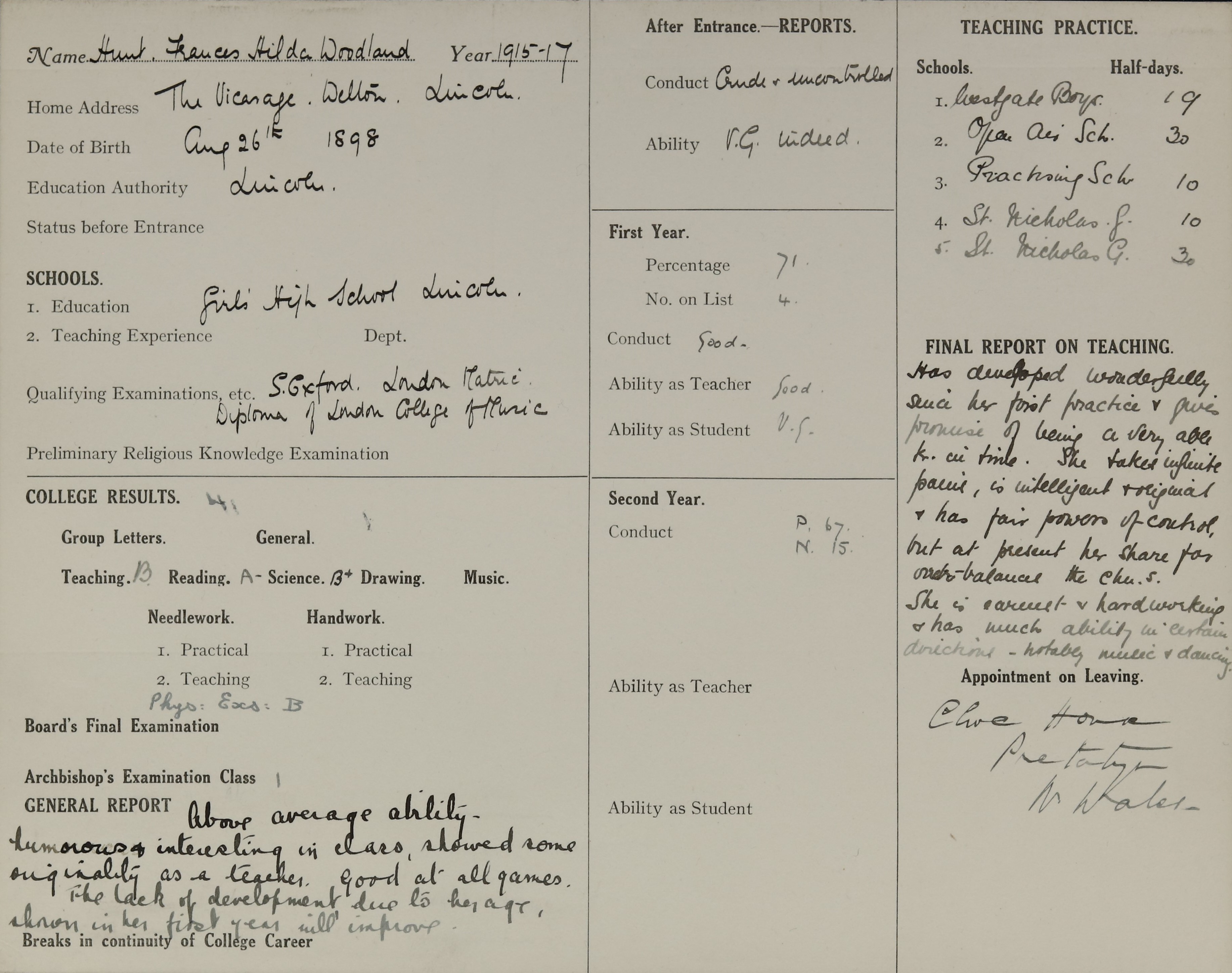 Qualification: Oxford Senior 1915.