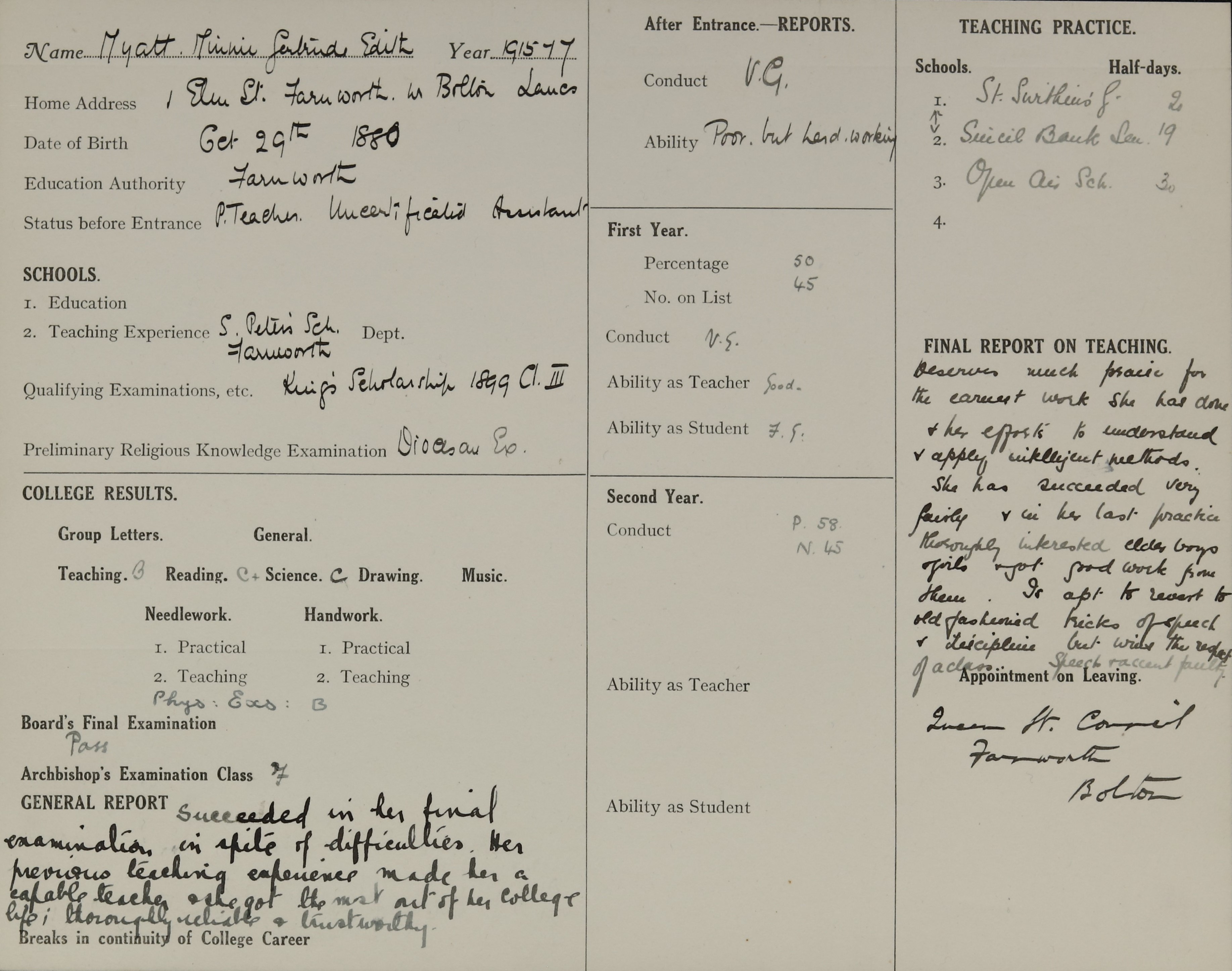 Born: 29 October 1880, Bolton