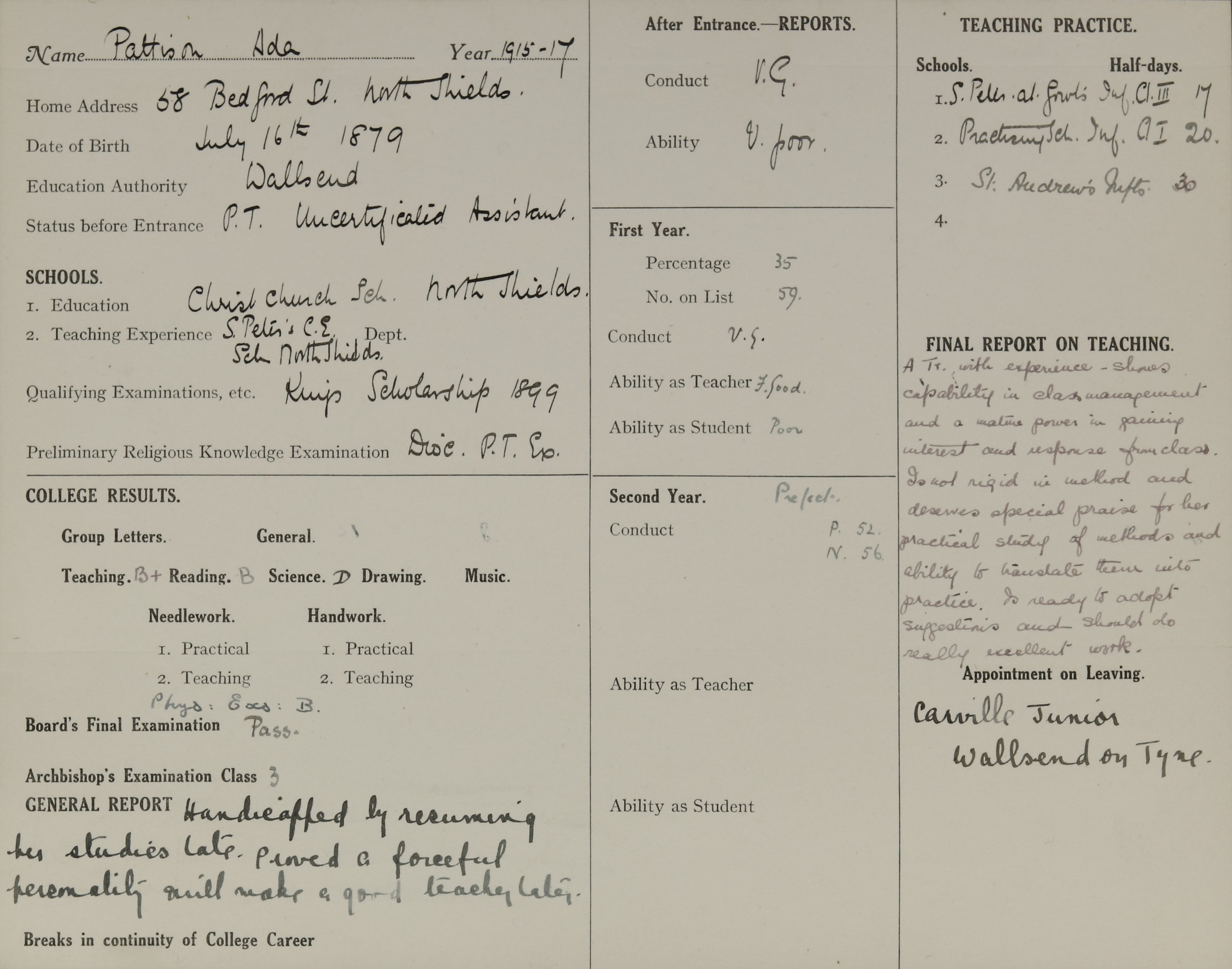 Appointed to Carville Junior, Wallsend-on-Tyne.