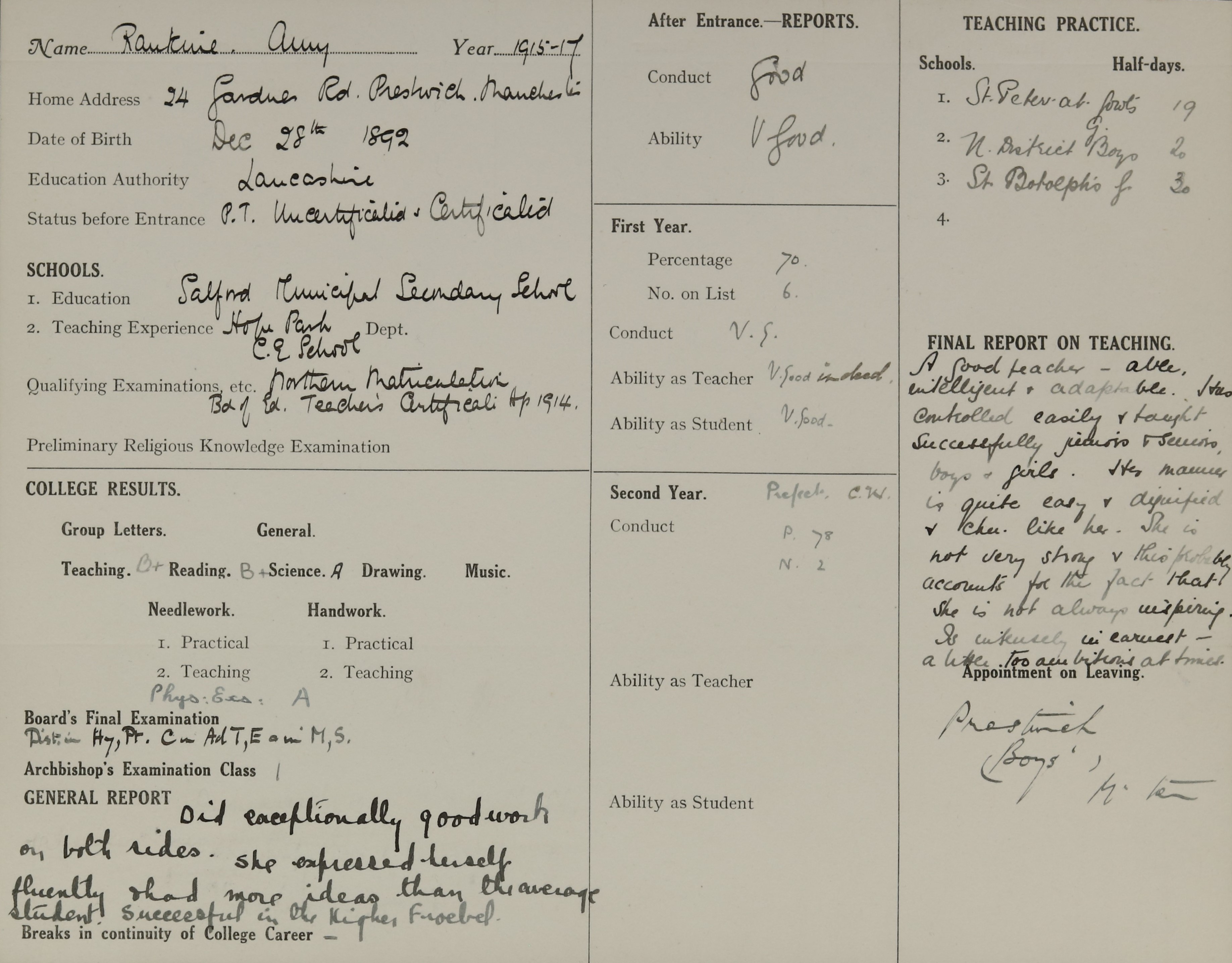 Appointed to Prestwich Boys, Manchester.