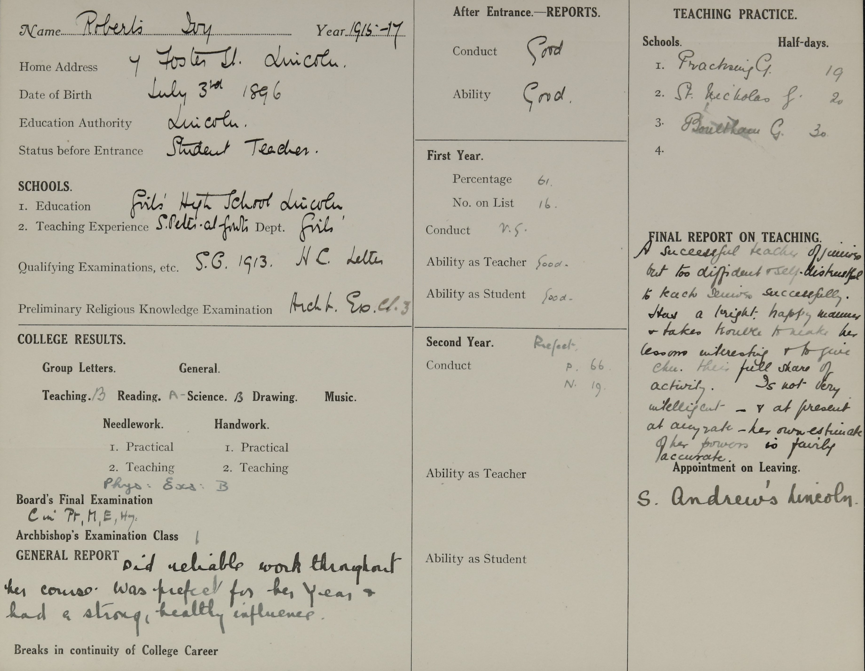 Born: 3 July 1896, Lincoln