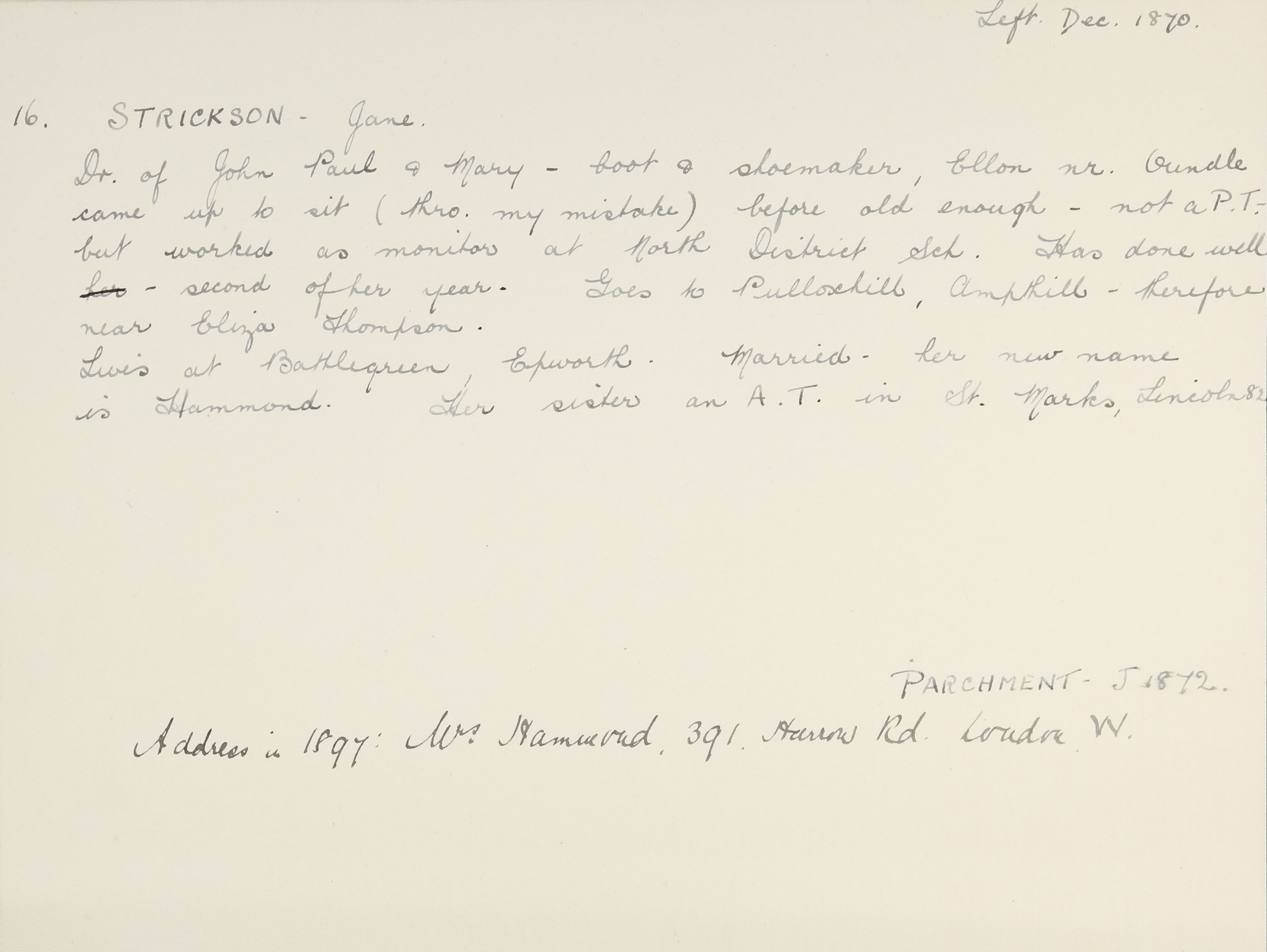 She is at Harrow Road, Paddington, London. Her husband is listed as ‘Coach Builder’. Jane and her daughter, Maud, are unlisted. There is a servant, Kate Crease (b. 1876). Her brother, Thomas Strickson (b. 1871), is listed as ‘Schoolmaster’.