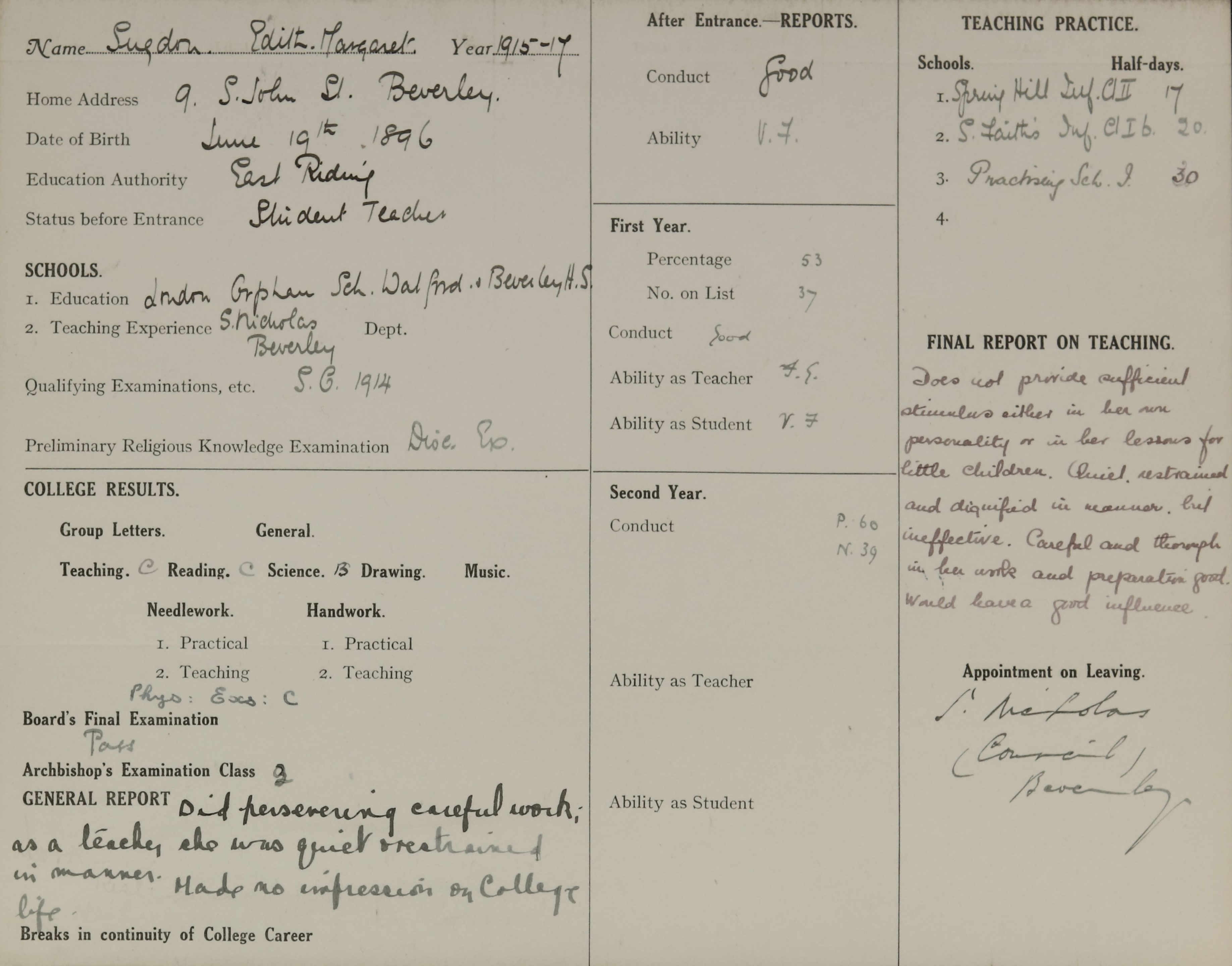 Born: 19 June 1896, Beverley