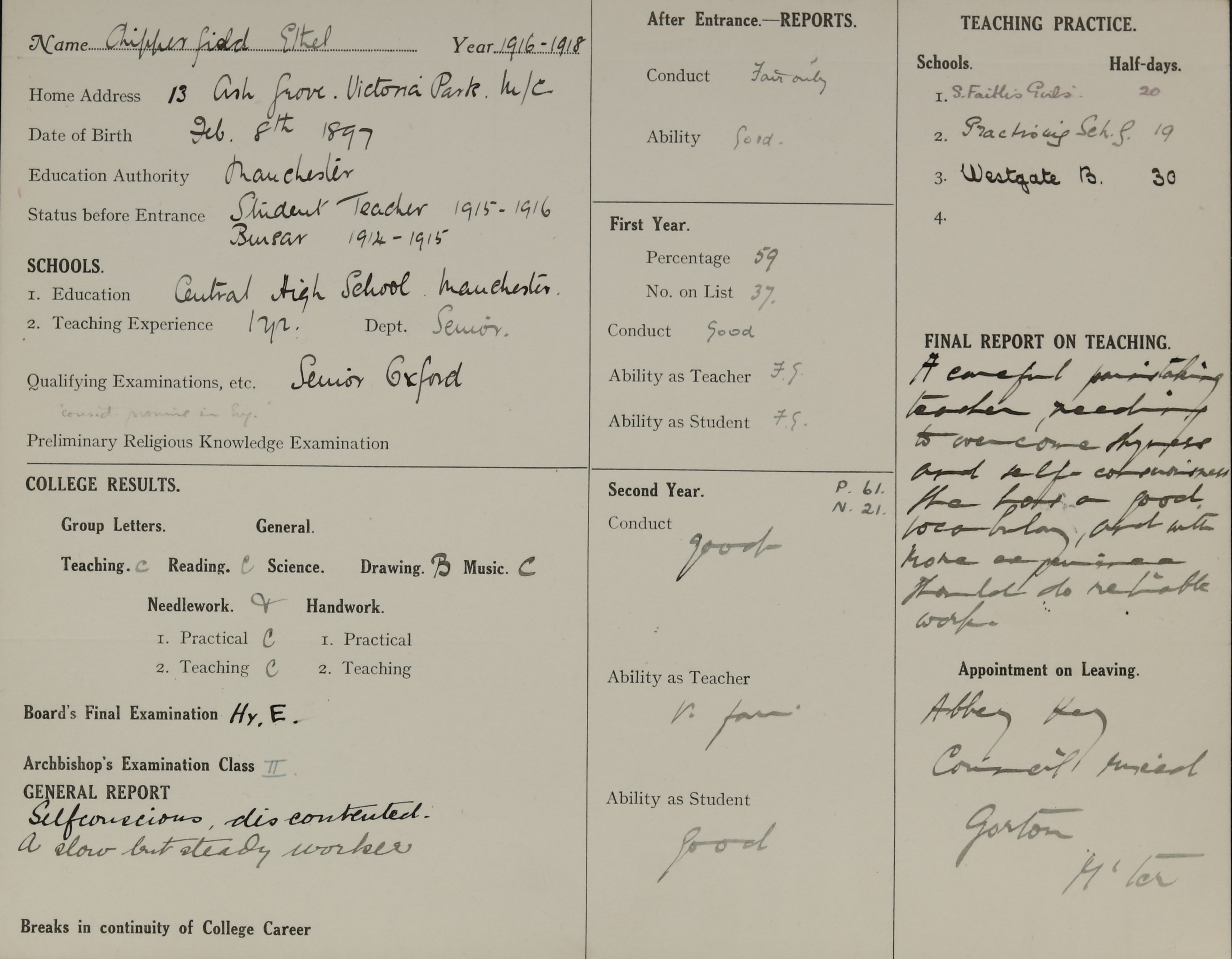 Born: 8 February 1897, Chorlton