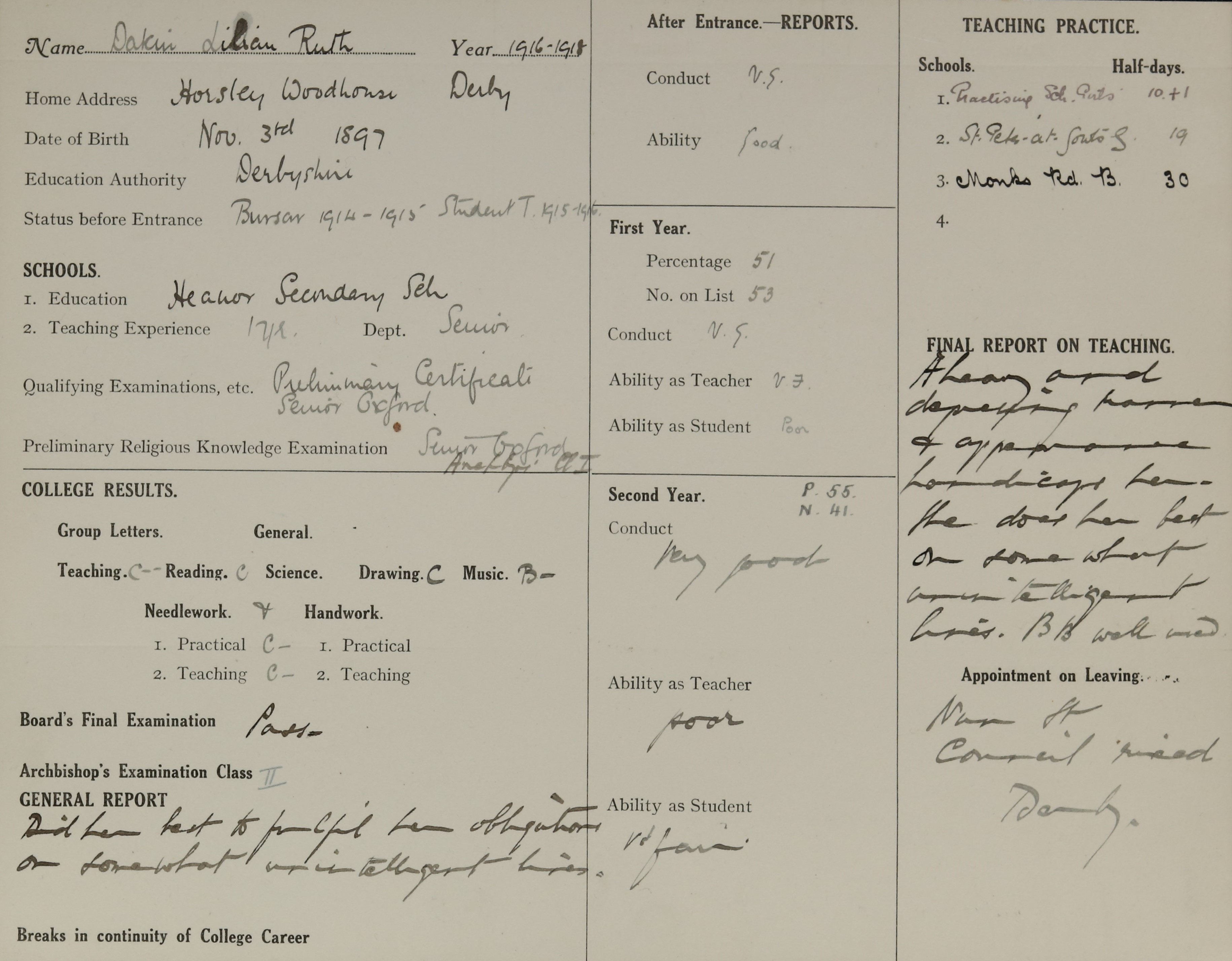 She is at Wayside Crown Hill, Belper. Her mother is unlisted. Lilian is listed as ‘Elementary School Teacher Head’.