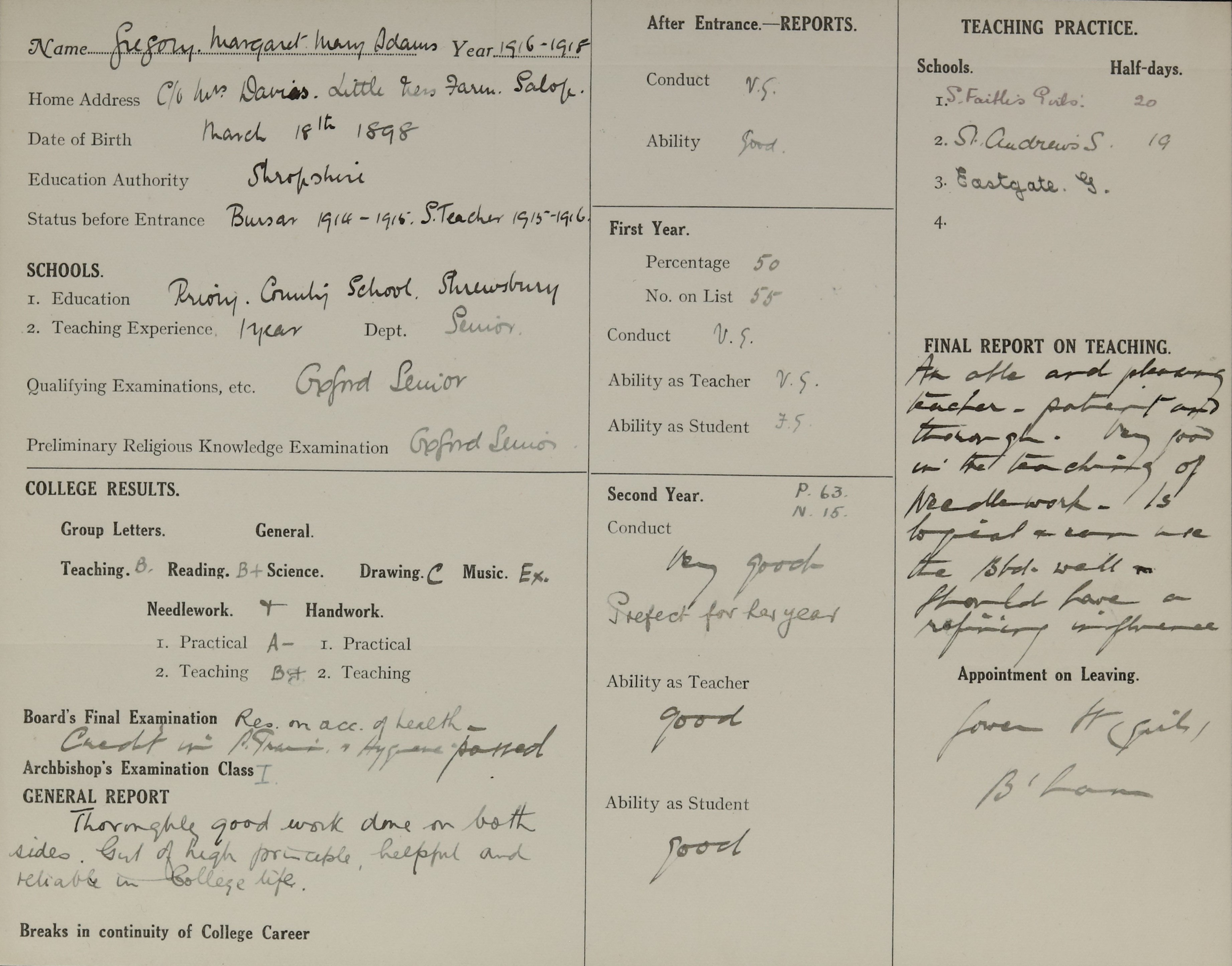 She is at The Orchards, Puddington. Her father is listed as ‘Farm Manager’. Her brother, Percy, is listed as ‘Farm Assistant’. Her mother and sisters, Elsie and Florence, are unlisted. Margaret is listed as ‘Certificated Assistant School Teacher’.
