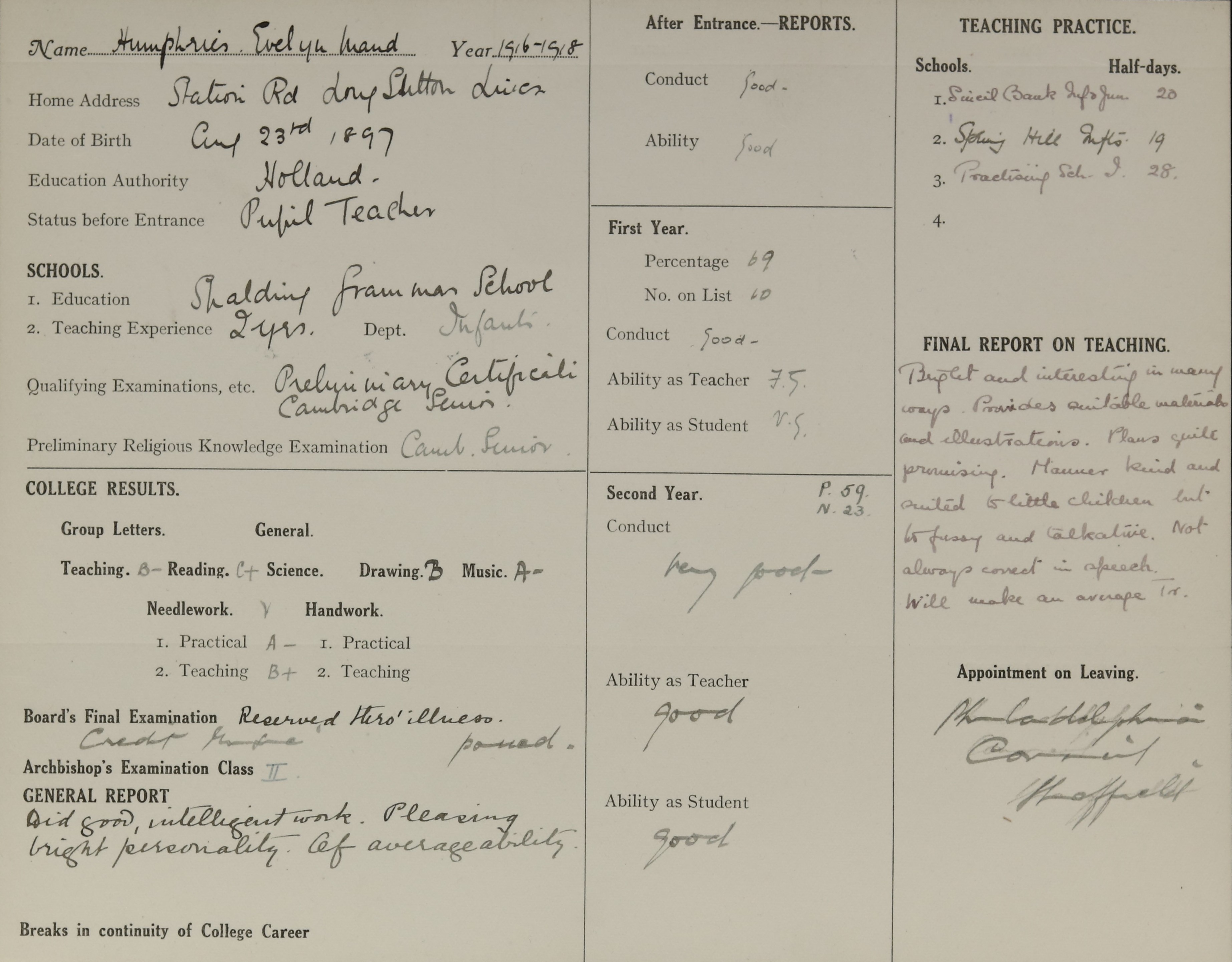 Sisters: Isabel Mary Humphries (b. 1894) [LDTC 1914]