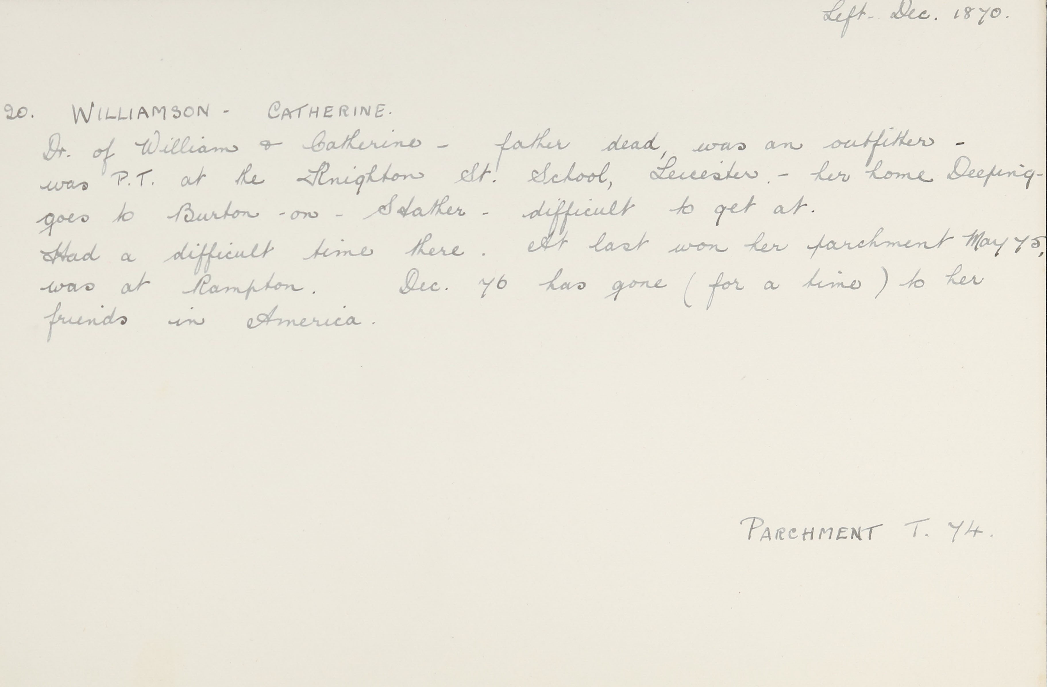 Mother: Catherine Williamson (b. 1820)