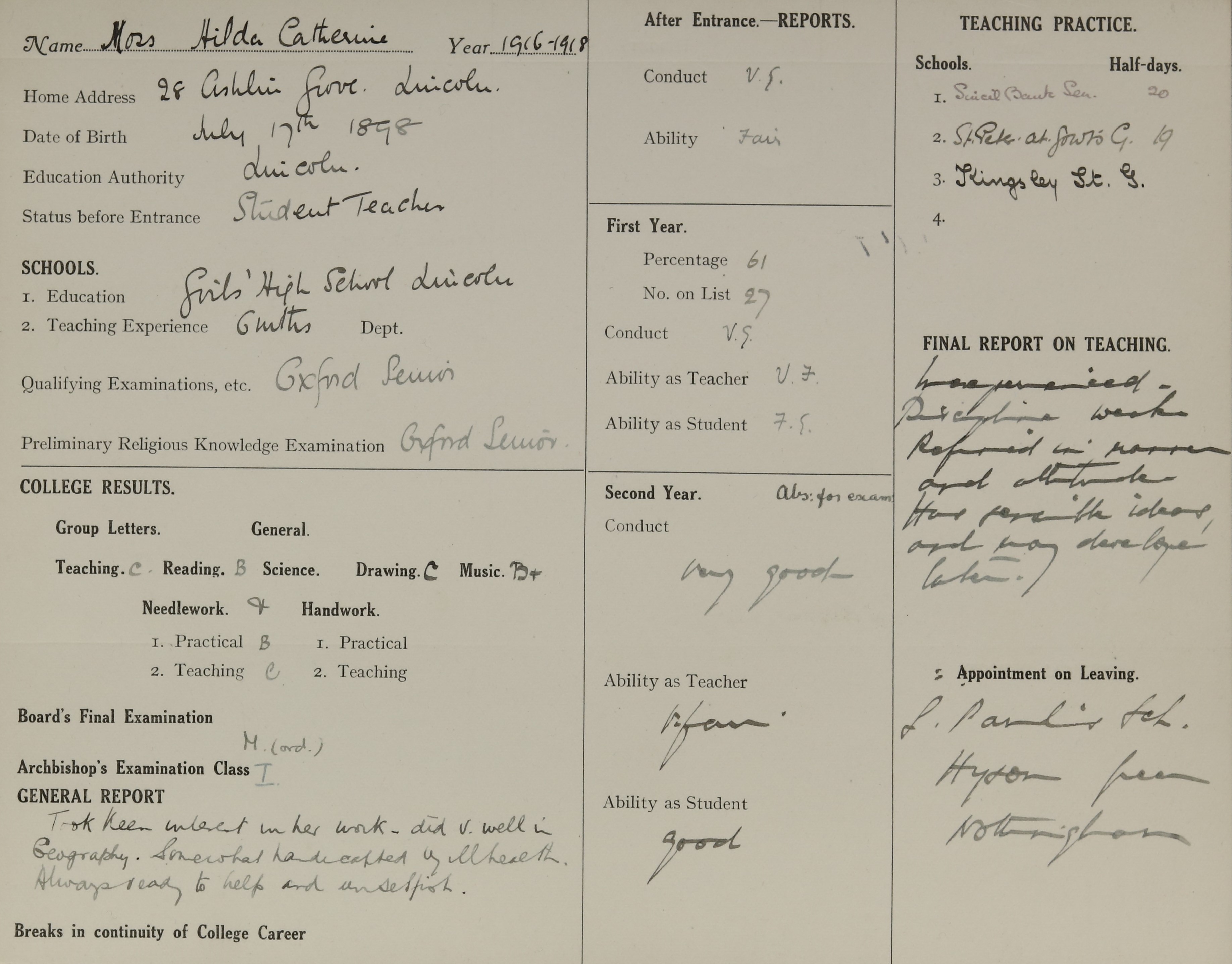 Born: 17 July 1898, Lincoln