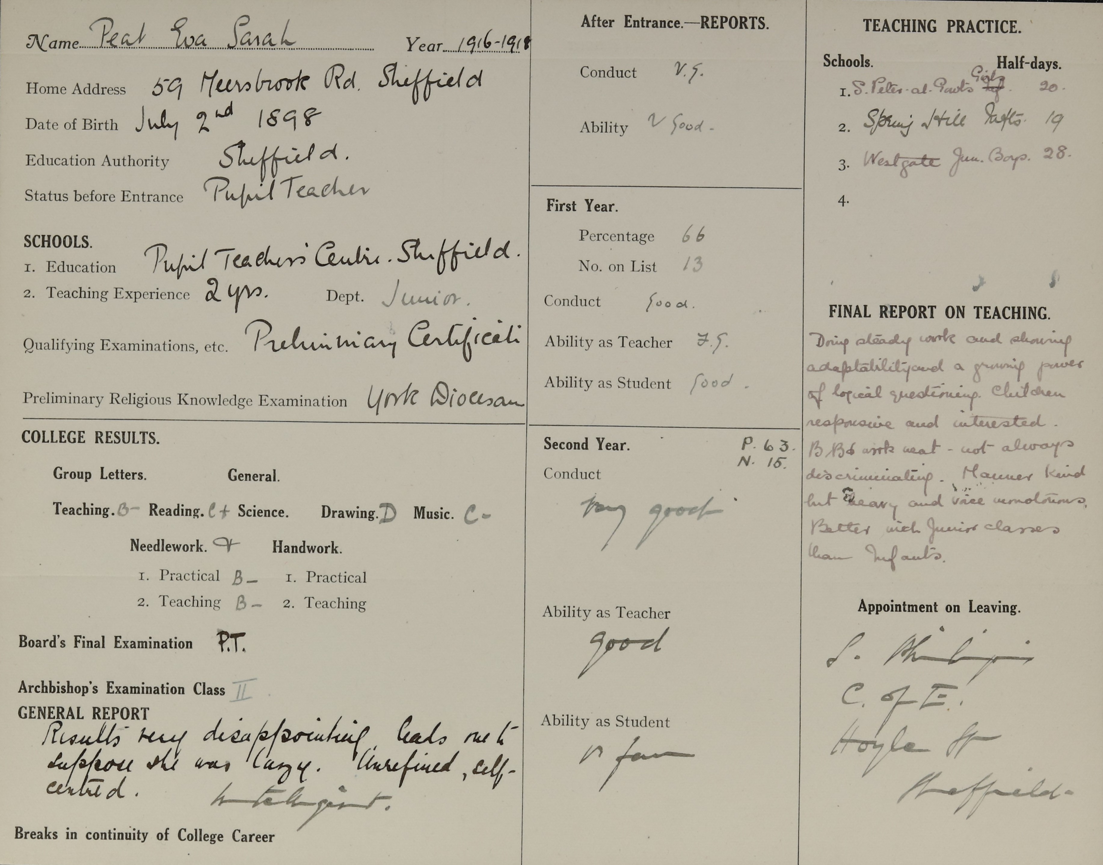 School: Gleadless Rd. Council Junior, Sheffield.