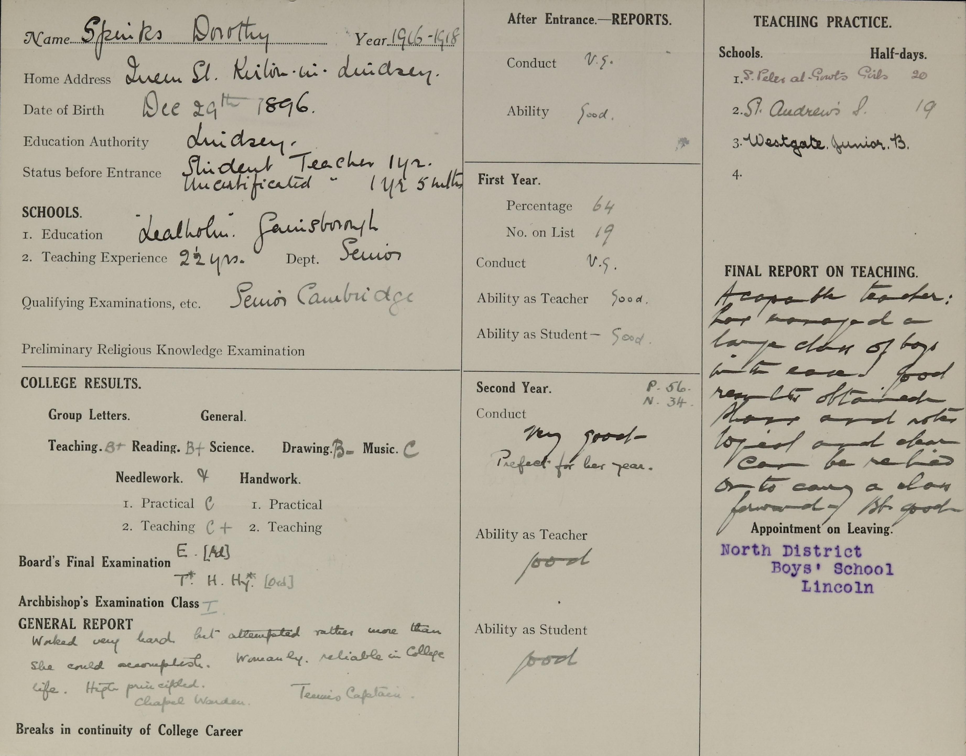 Appointed to North District Boys, Lincoln.
