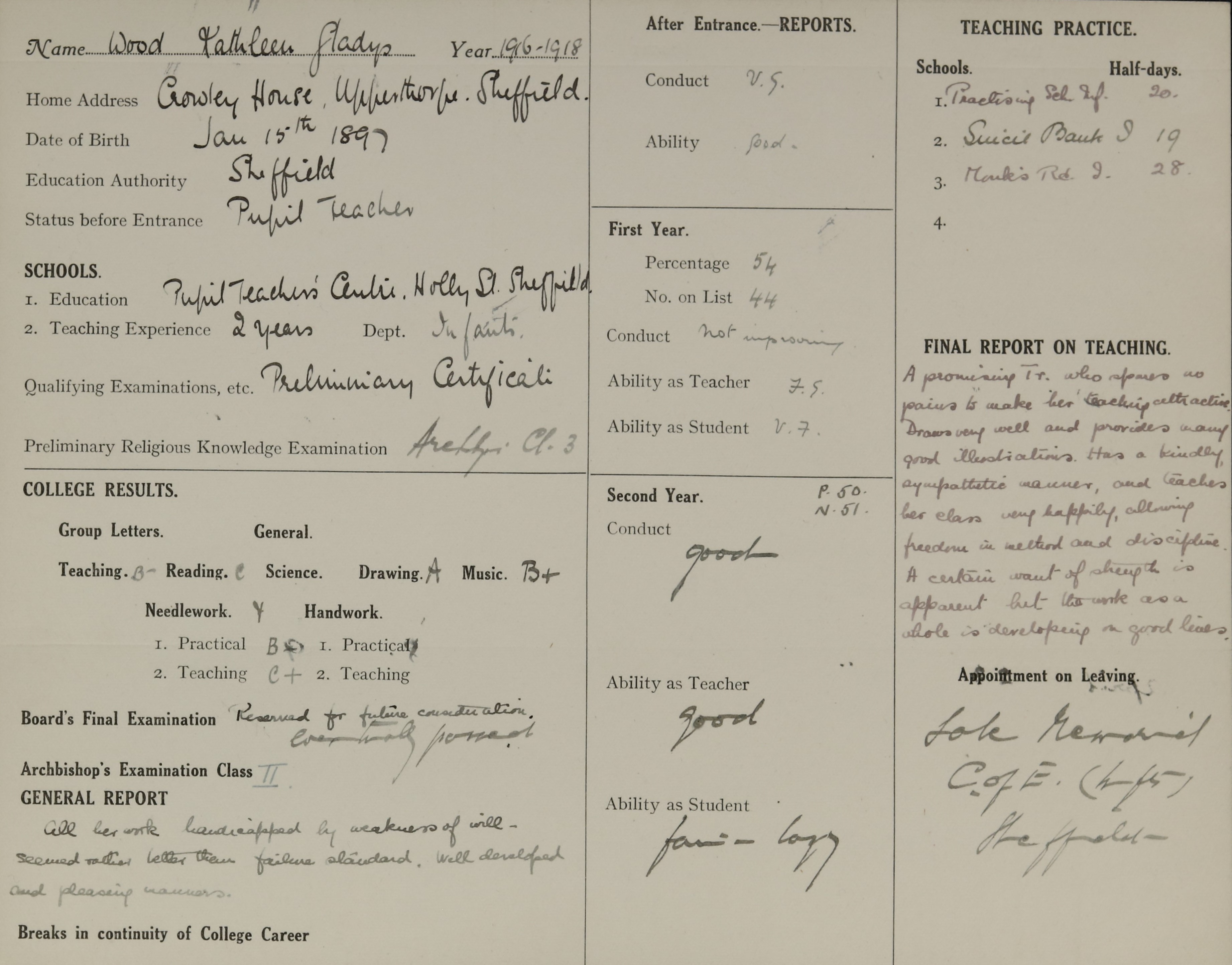 Born: 15 January 1897, Ecclesall Bierlow