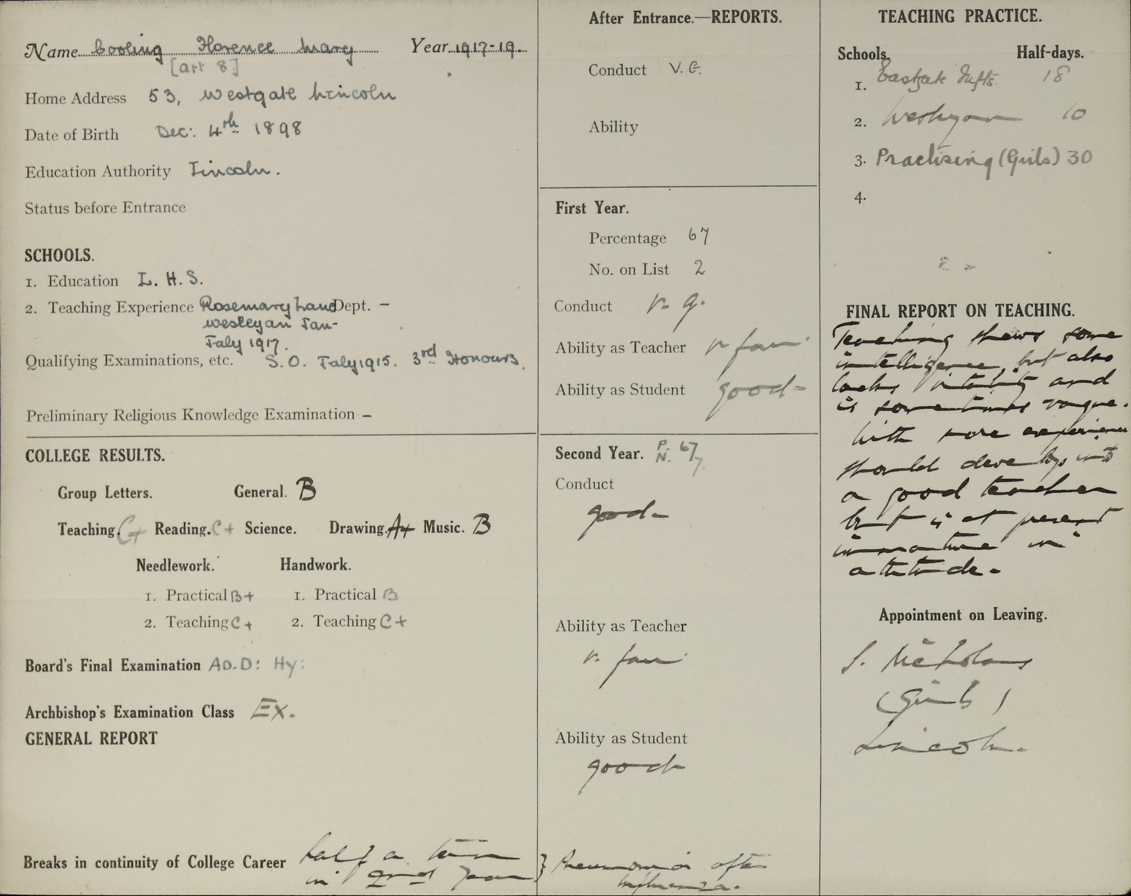 Born: 4 December 1898, Lincoln