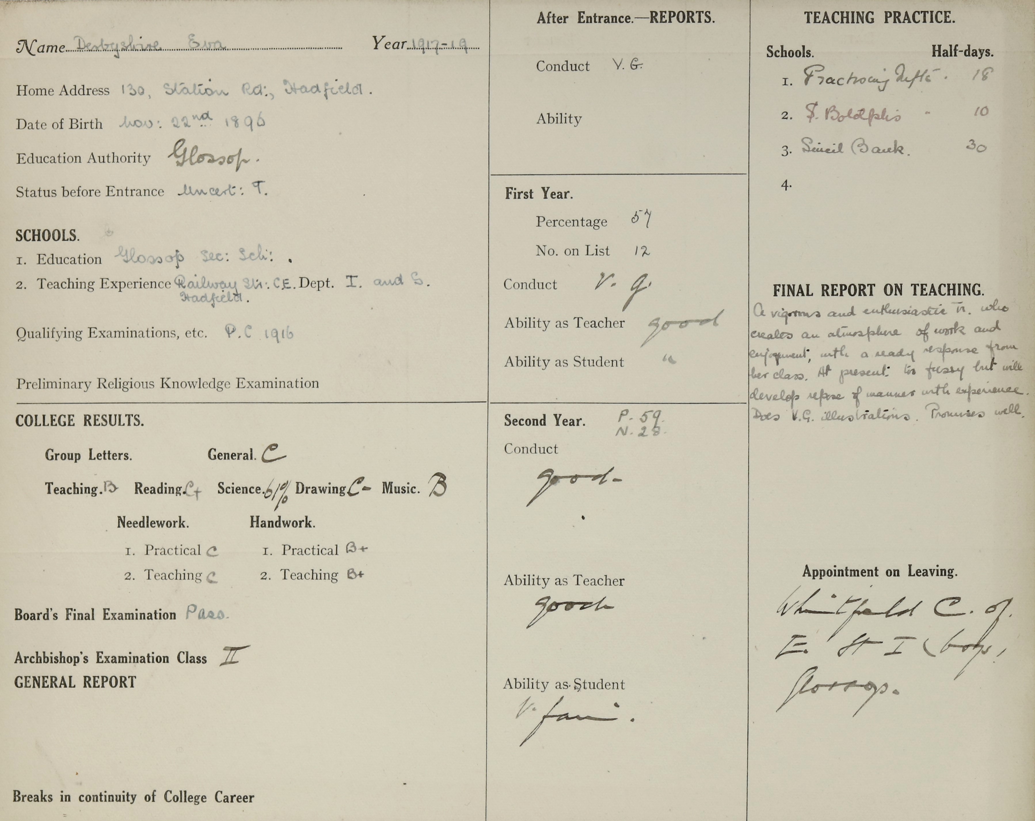Appointed to Whitfield C. of E. Boys, Glossop.