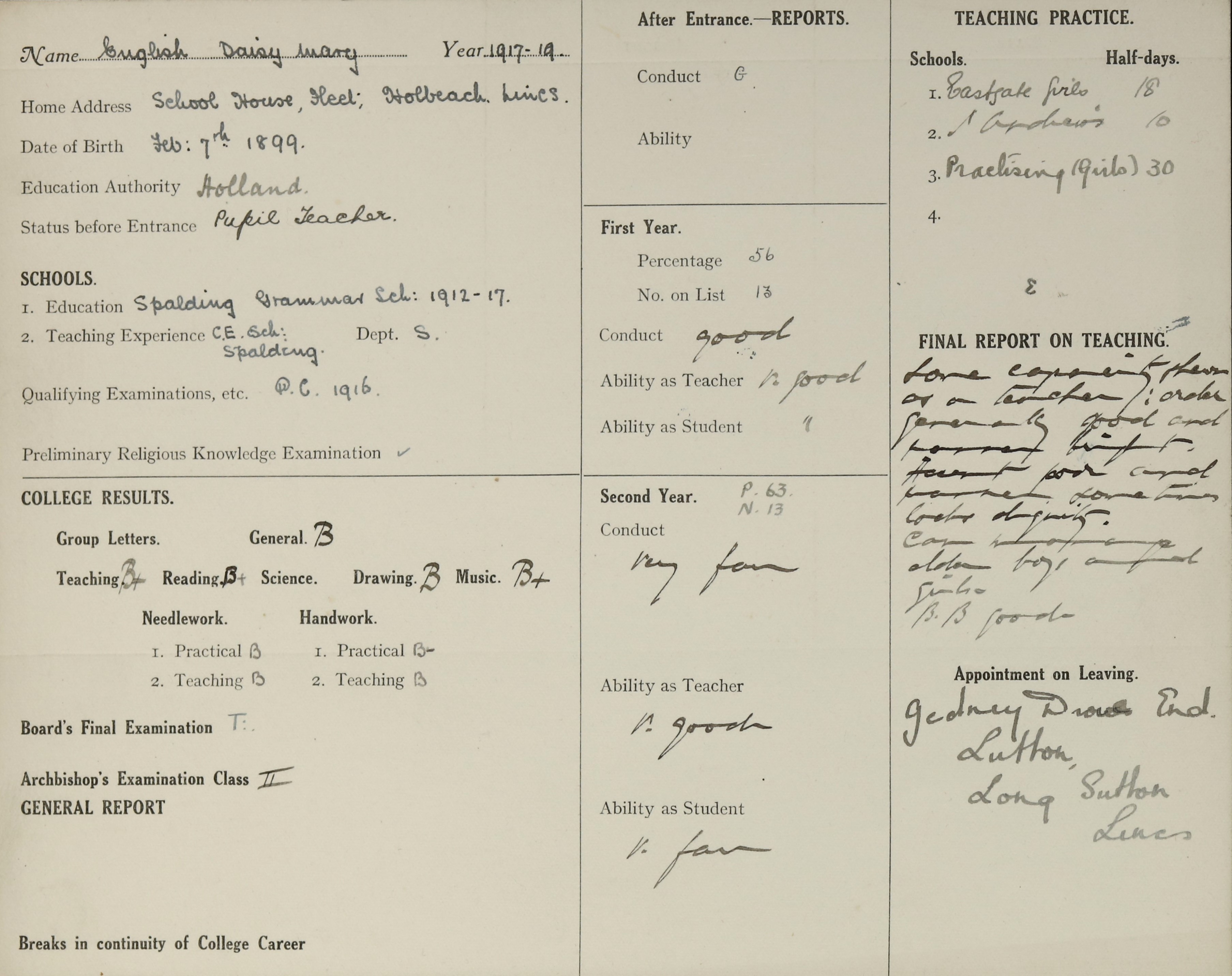 Born: 7 February 1899, Holbeach