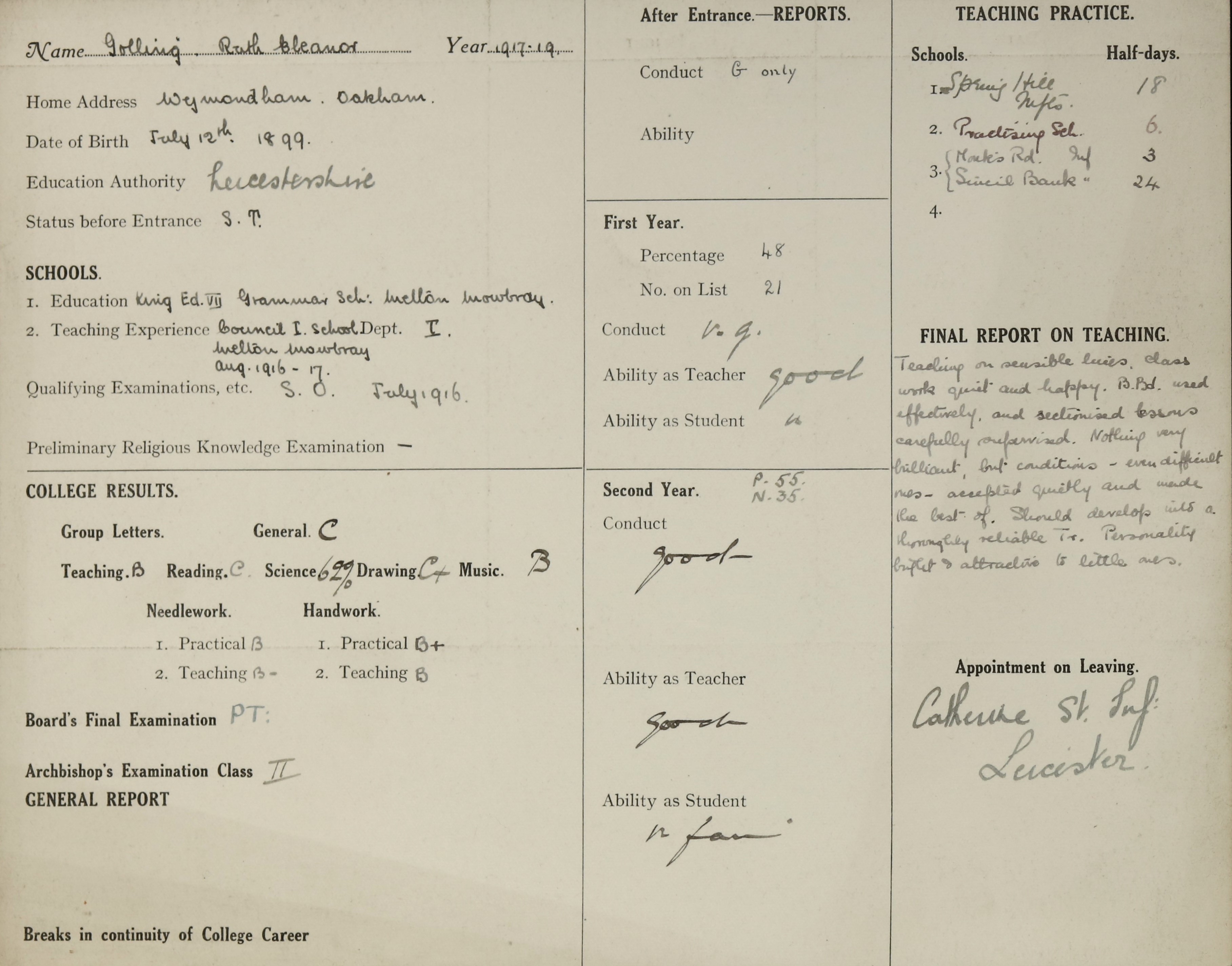 She is at Wynmond Lane, Wymondham, Oakham, Rutland. Her father is listed as ‘Builder and Farmer’. Her stepmother is unlisted. Ruth is listed as ‘School Teacher’. Her brother, William, is listed as ‘Builder’s Assistant’.