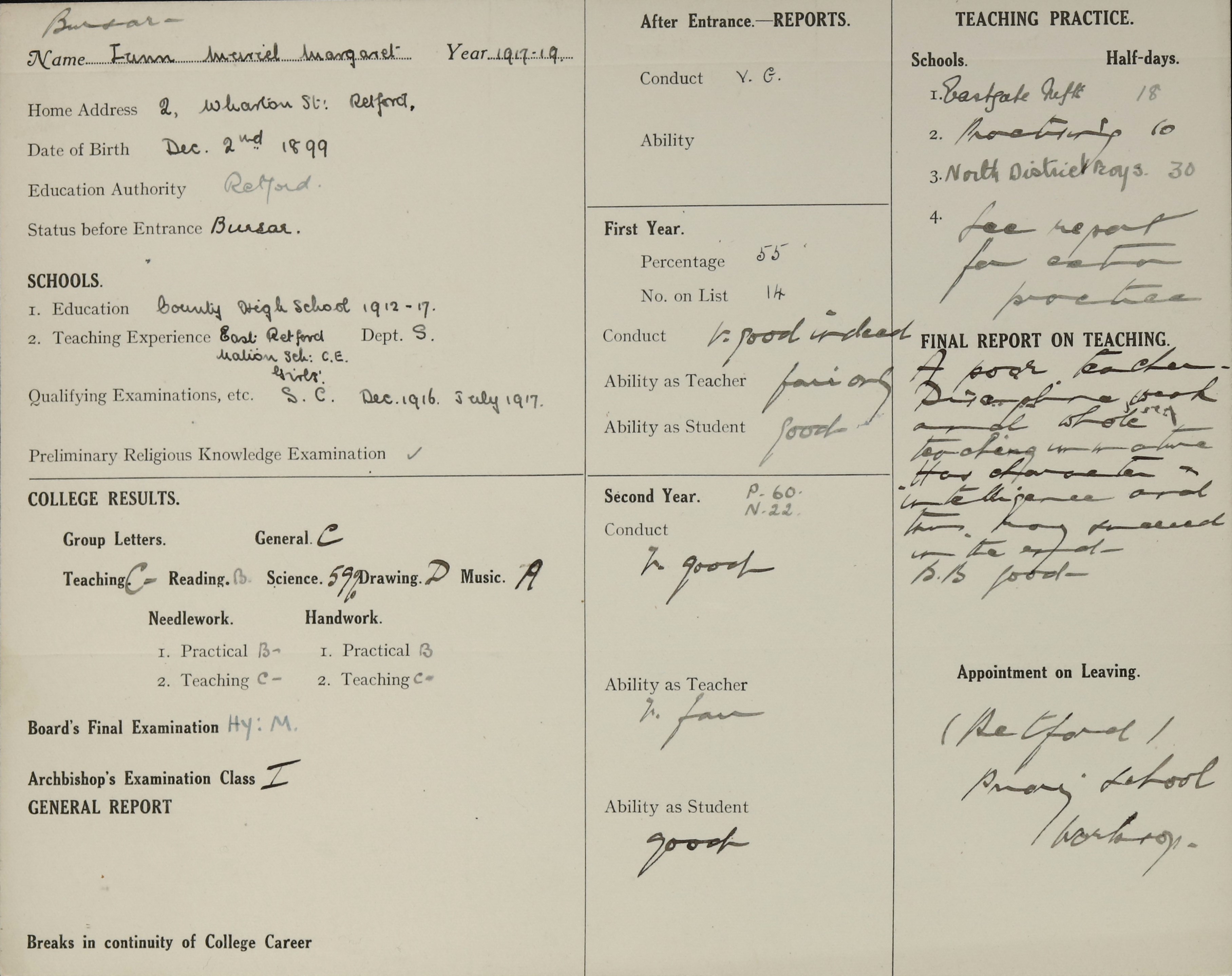 She is at 2 Wharton Street, Retford. Her father is listed as ‘Nurseryman’. Muriel is listed as ‘Trained Certificated Assistant Mistress’.