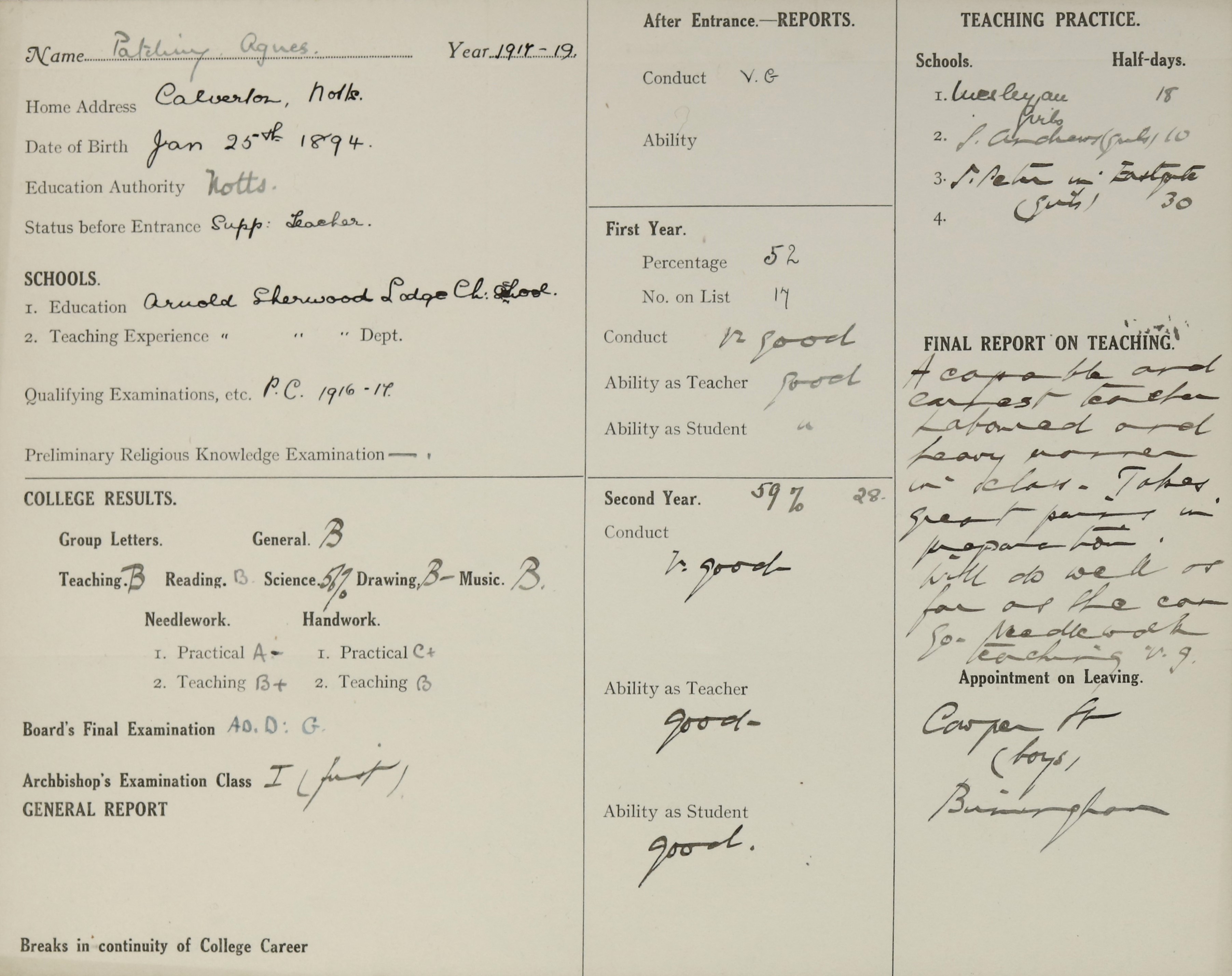 At Arnold, Sherwood Lodge C. of E., Notts.