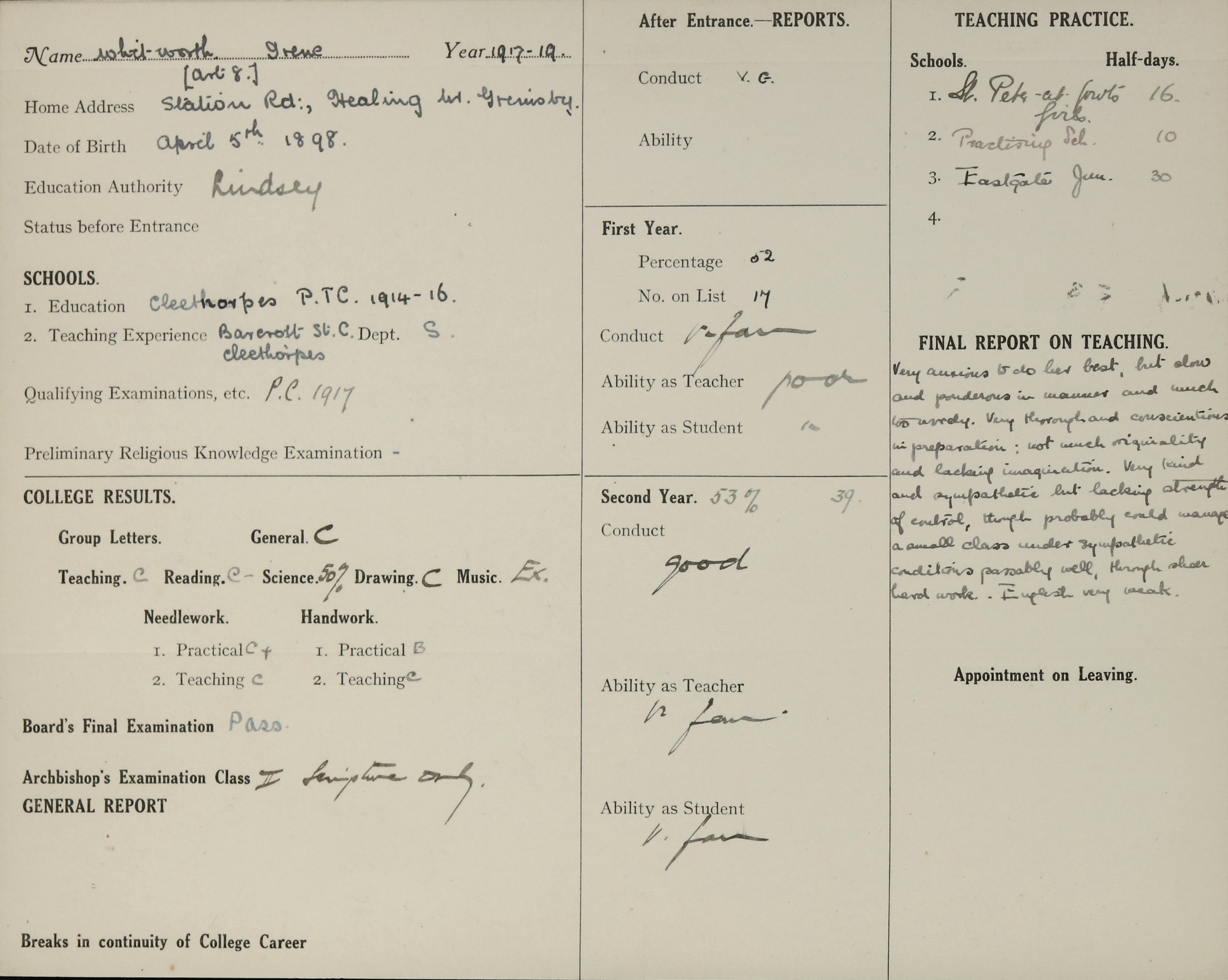 Born: 5 April 1898, Grimsby