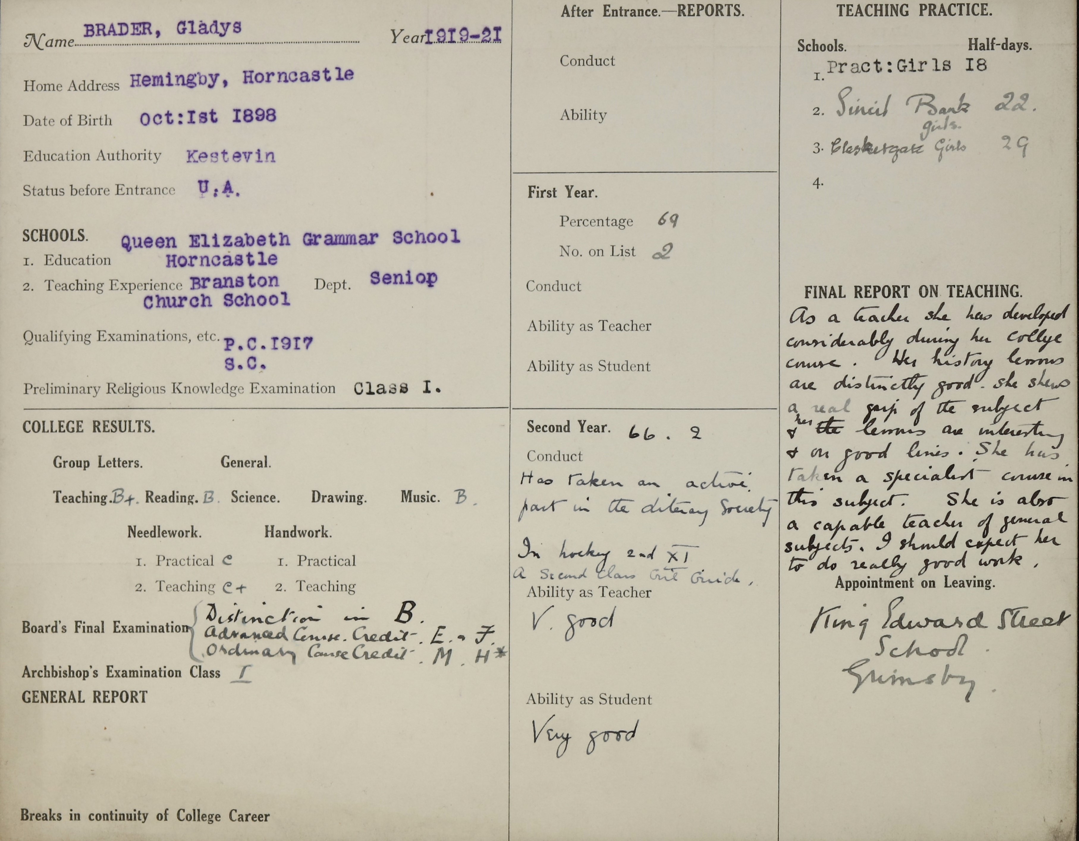 Below are scans of documents, records or images we found in our archive that relate to Gladys Brader.