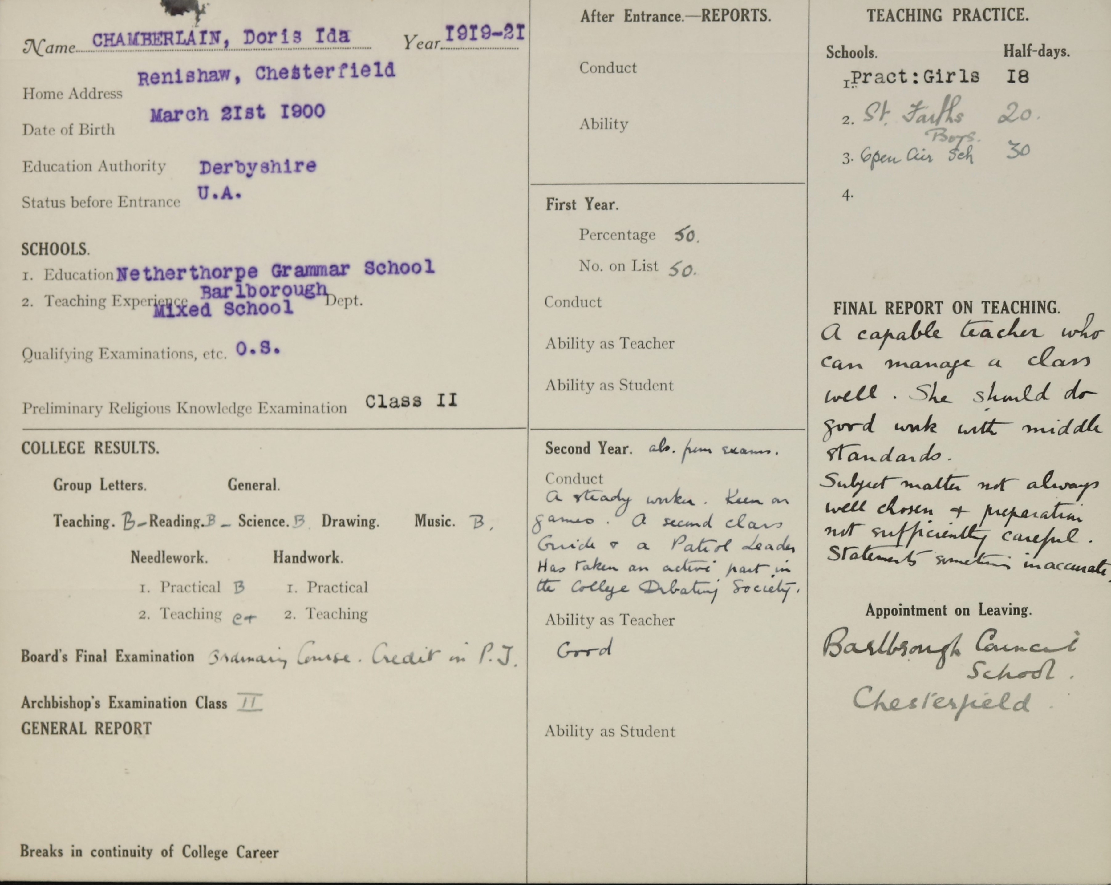 Below are scans of documents, records or images we found in our archive that relate to Doris Chamberlain.
