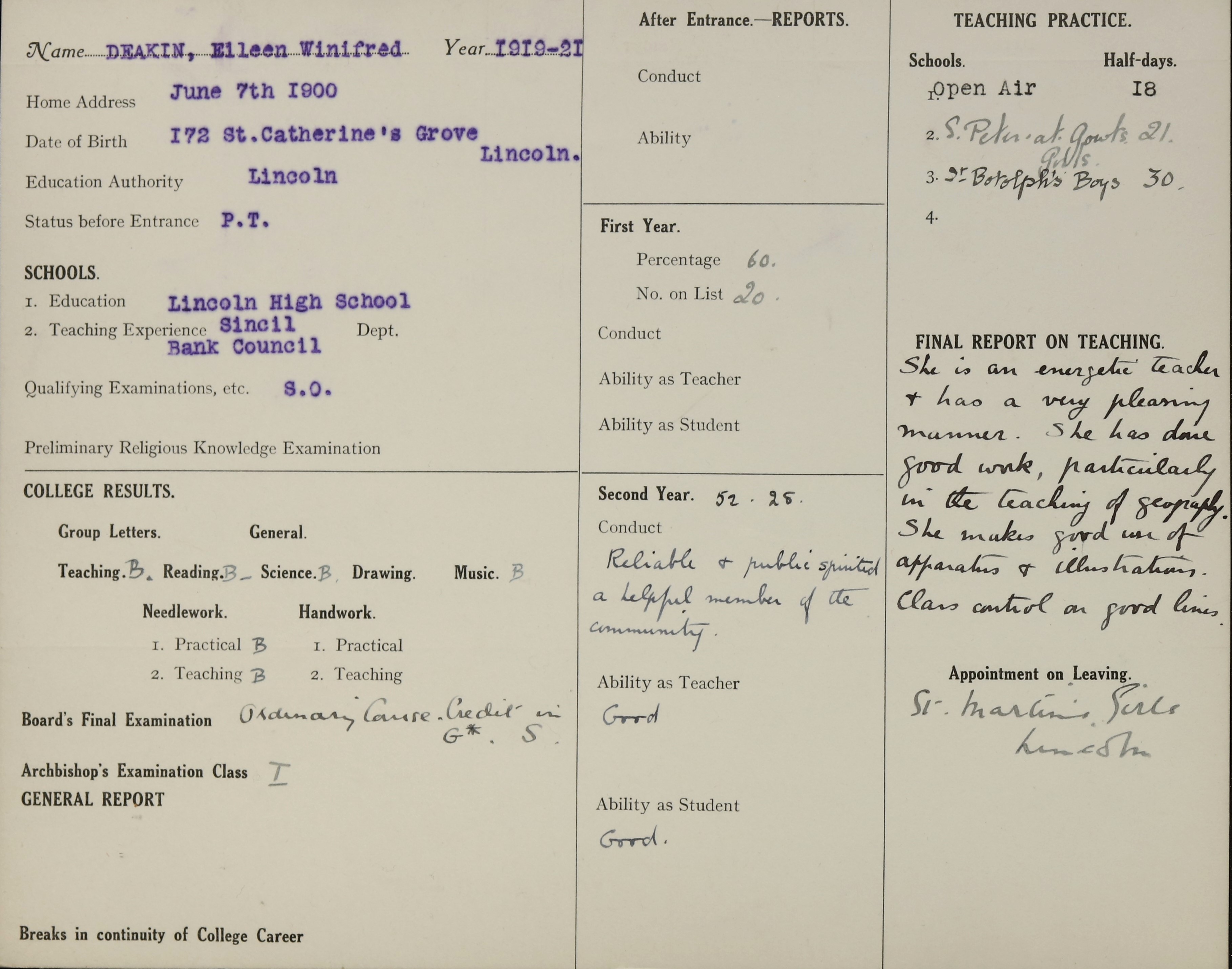 Below are scans of documents, records or images we found in our archive that relate to Eileen Deakin.
