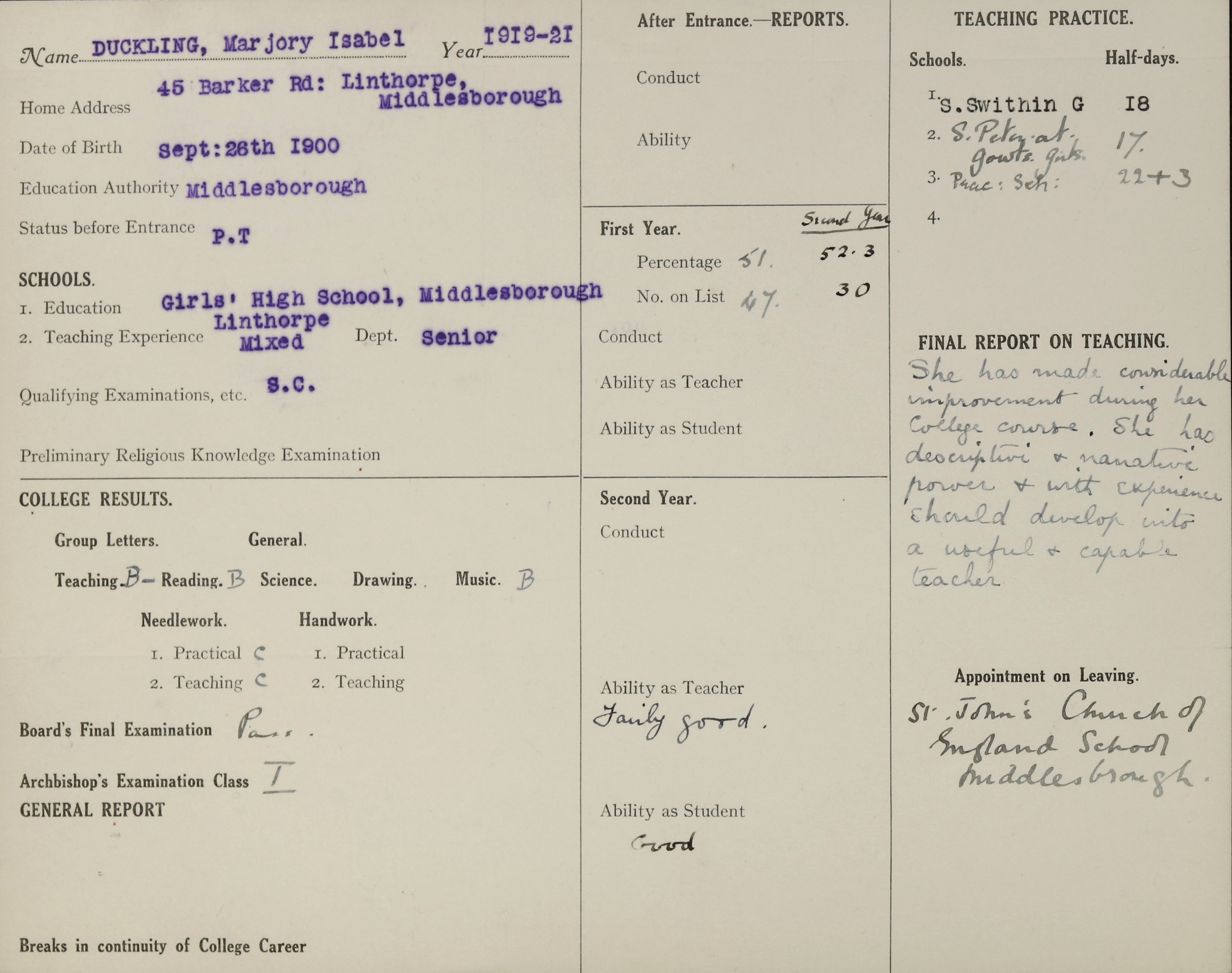Below are scans of documents, records or images we found in our archive that relate to Marjory Duckling.