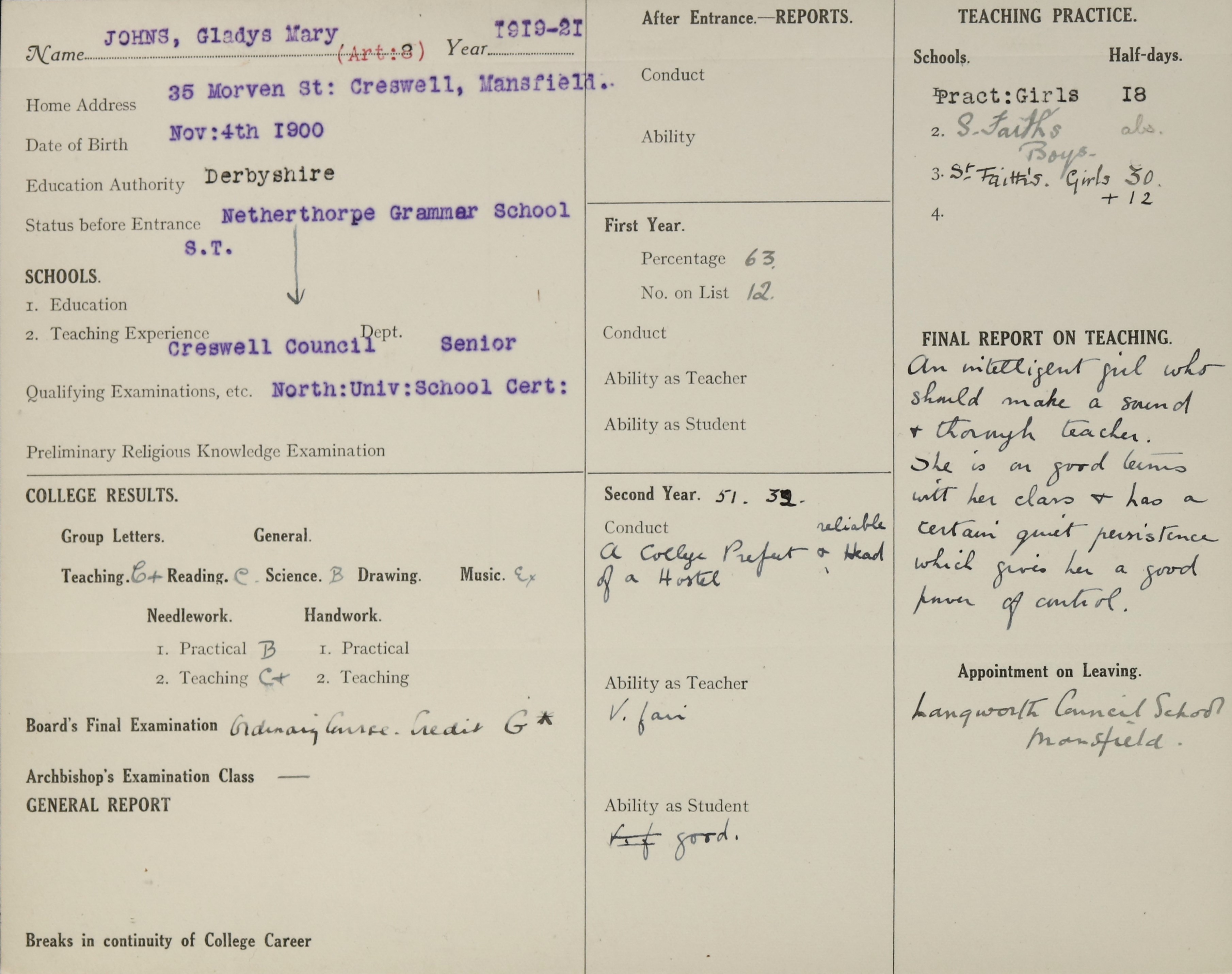 Below are scans of documents, records or images we found in our archive that relate to Gladys Johns.