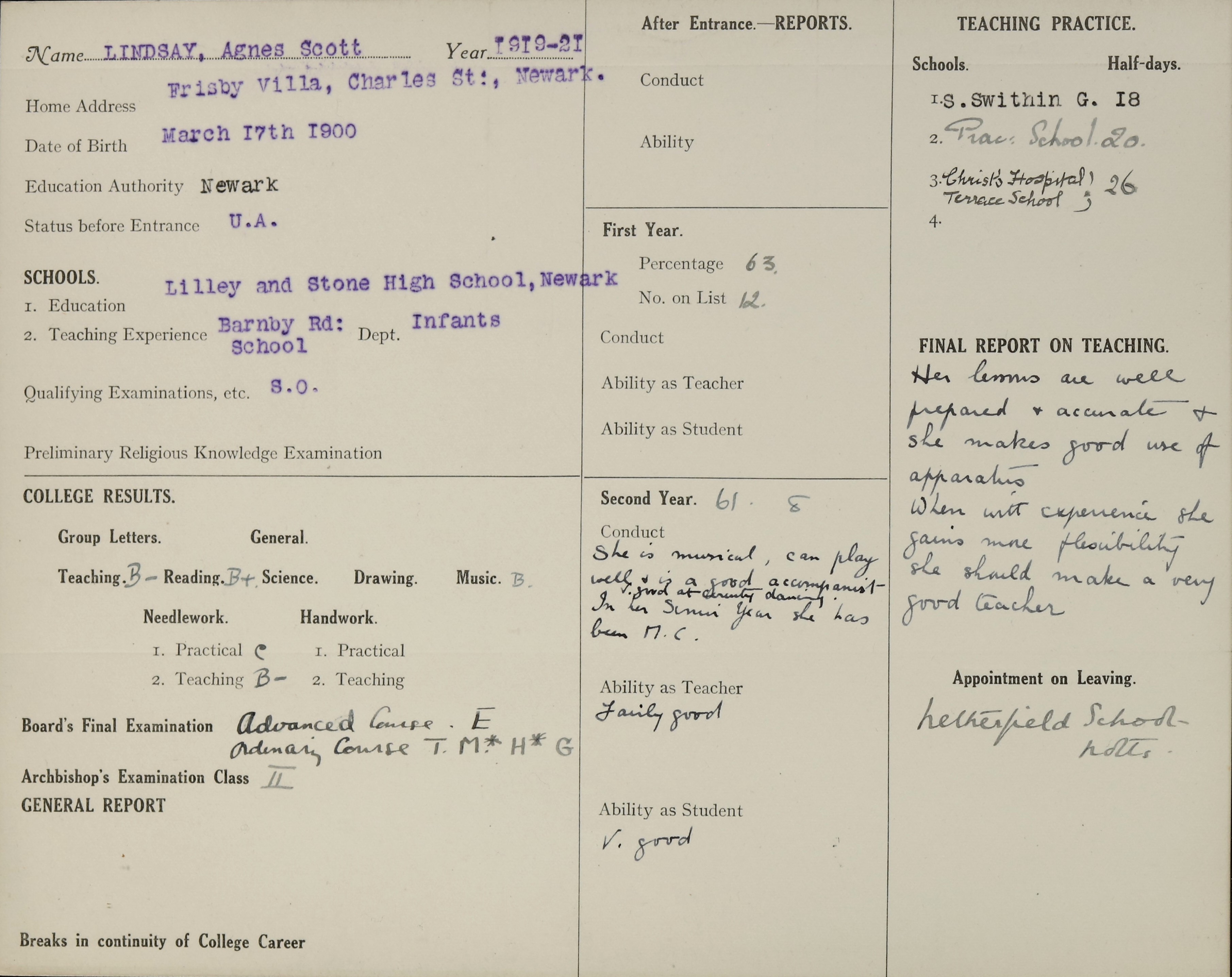 Below are scans of documents, records or images we found in our archive that relate to Agnes Lindsay.
