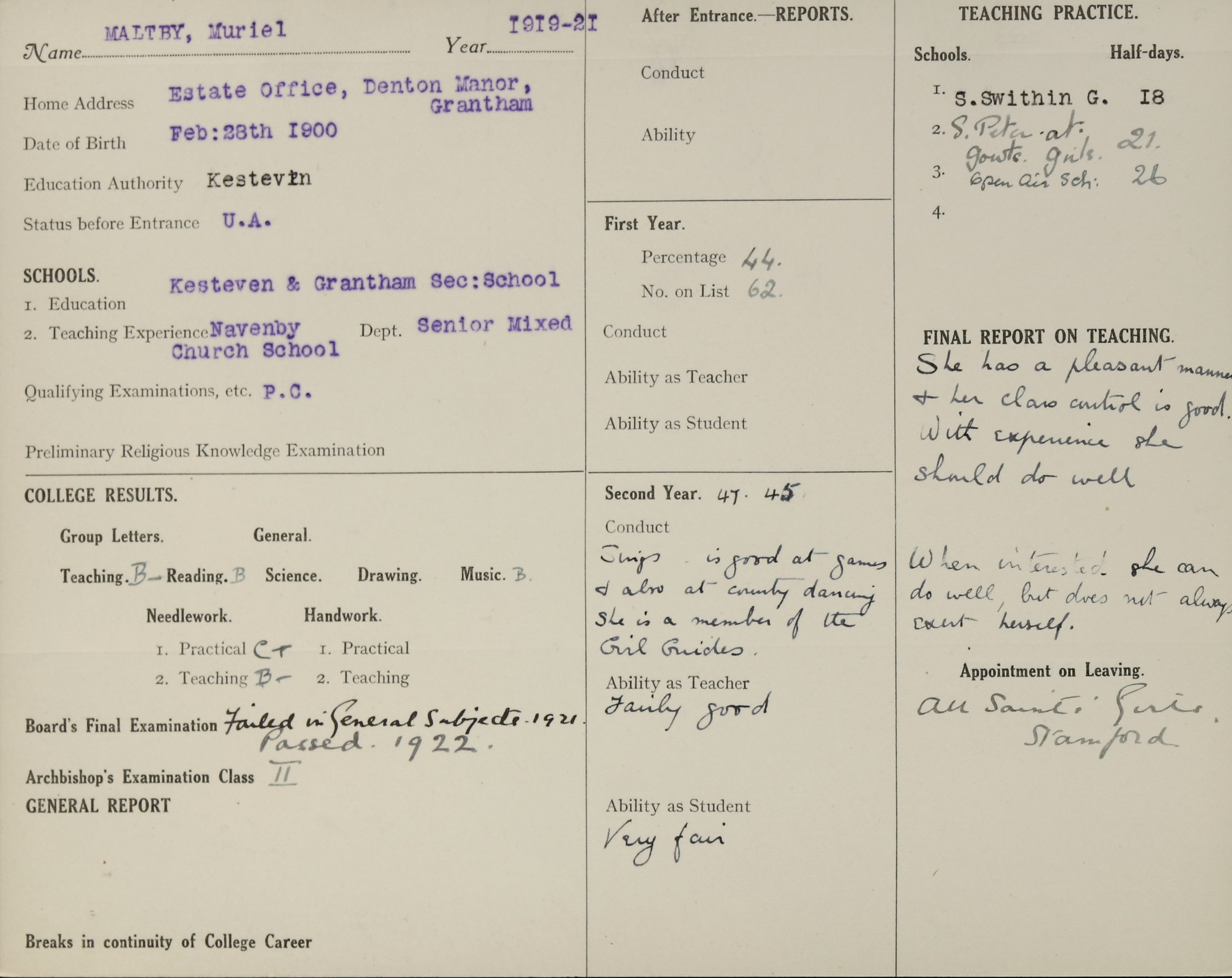 Below are scans of documents, records or images we found in our archive that relate to Muriel Maltby.