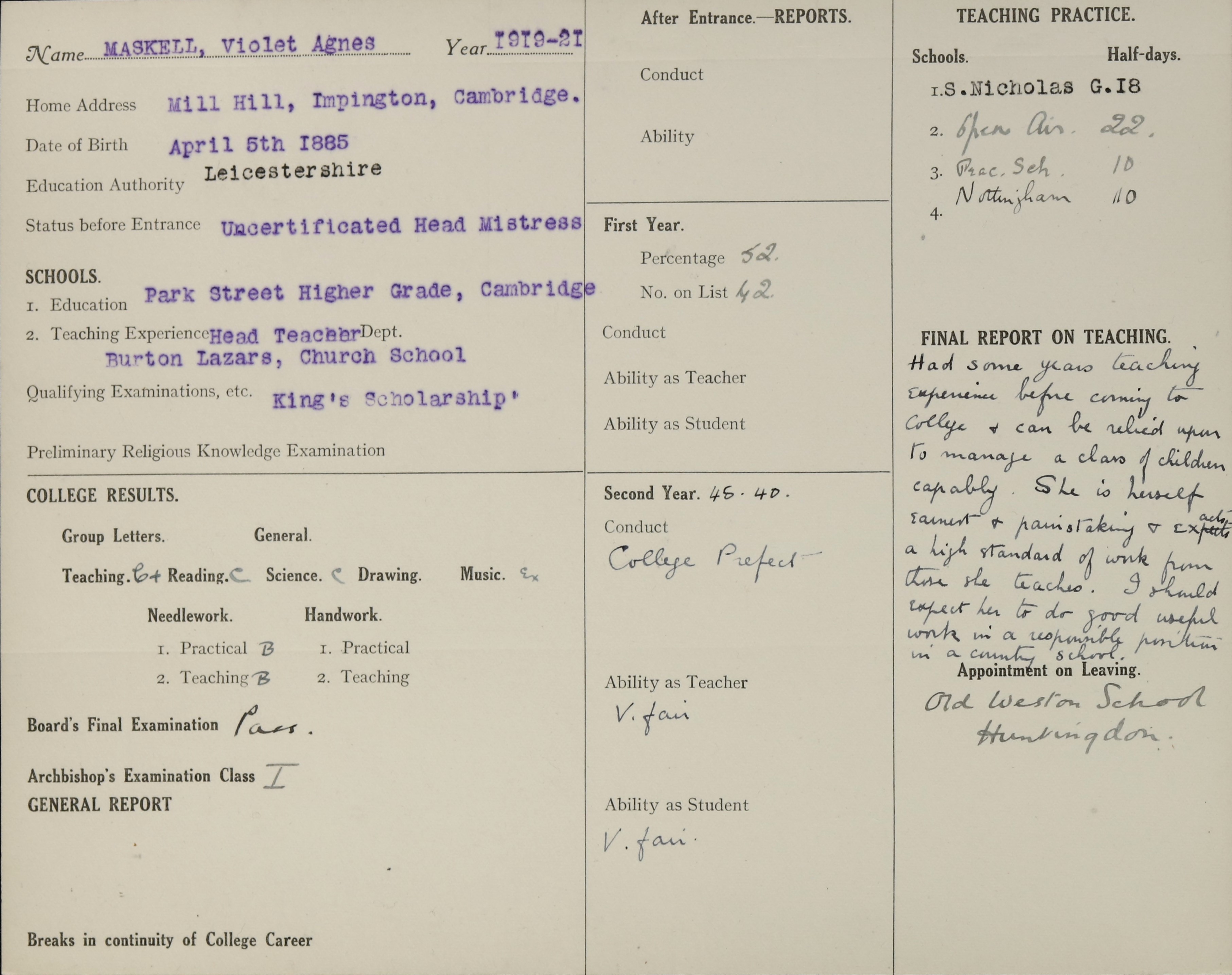 Below are scans of documents, records or images we found in our archive that relate to Violet Maskell.