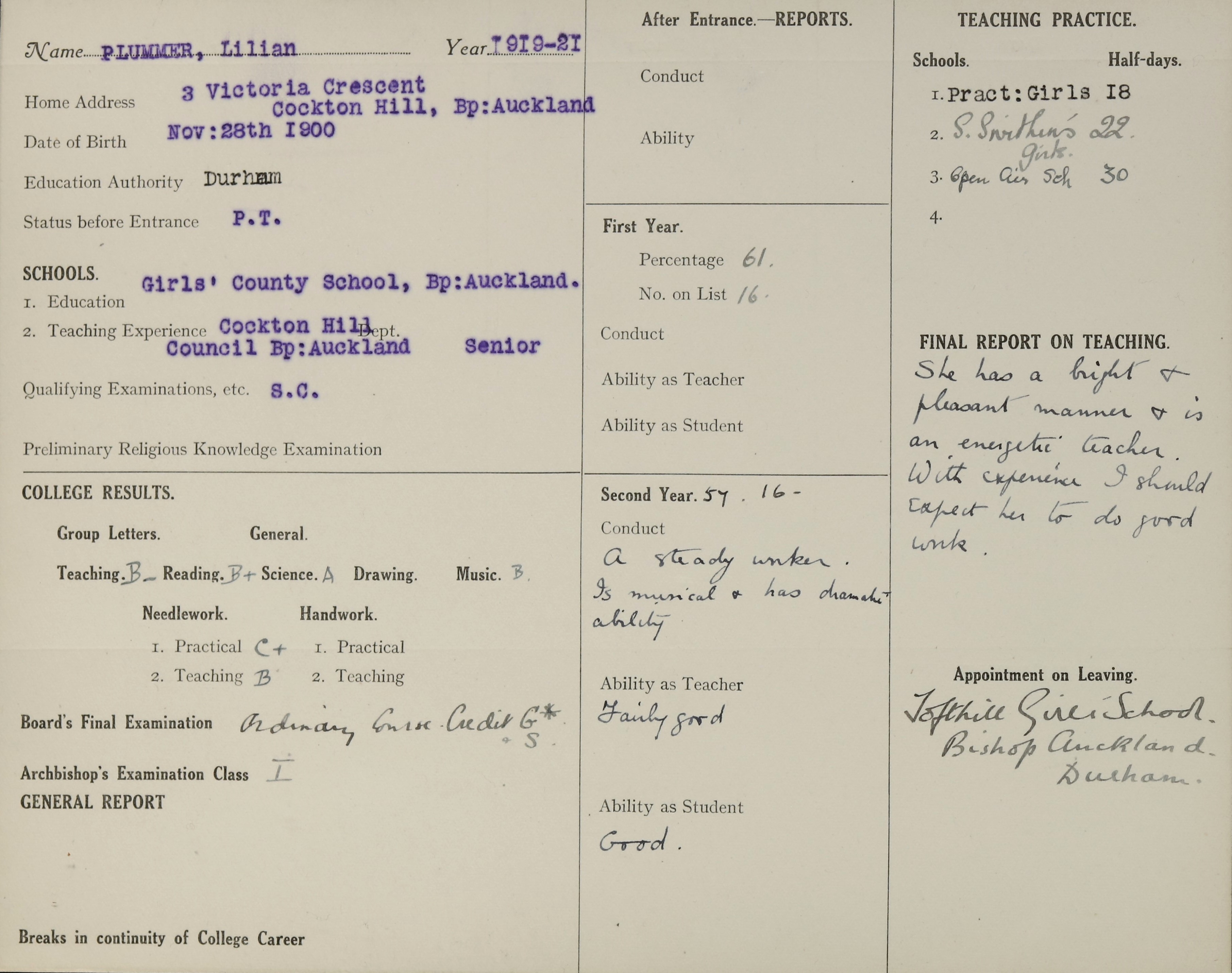 Below are scans of documents, records or images we found in our archive that relate to Lilian Plummer.