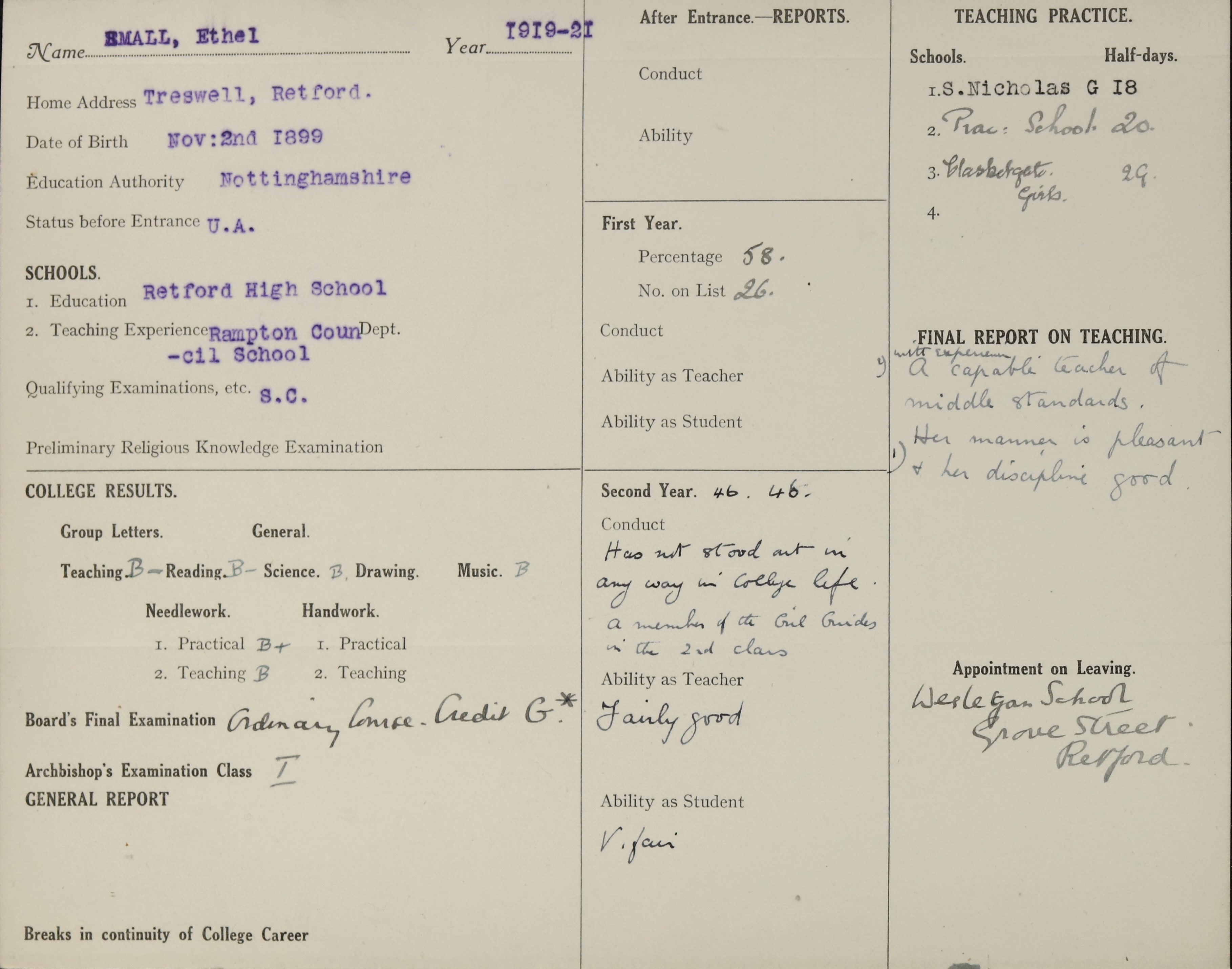 Below are scans of documents, records or images we found in our archive that relate to Ethel Small.