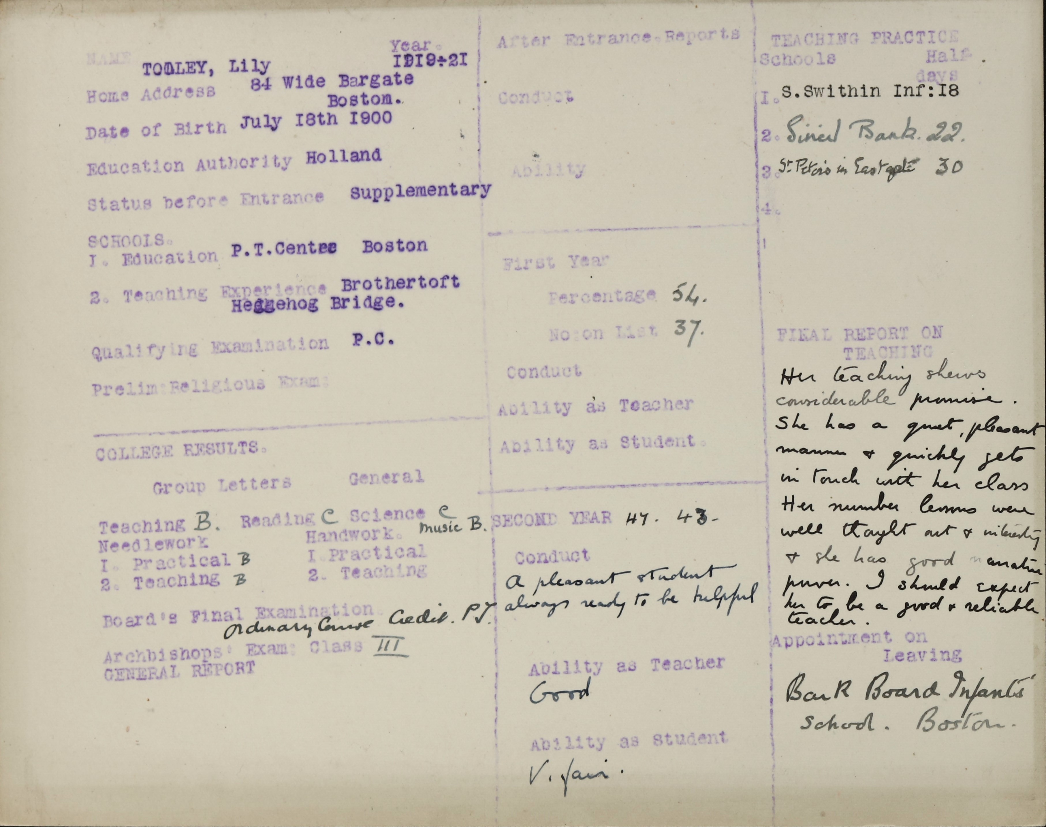 Below are scans of documents, records or images we found in our archive that relate to Lily Tooley.
