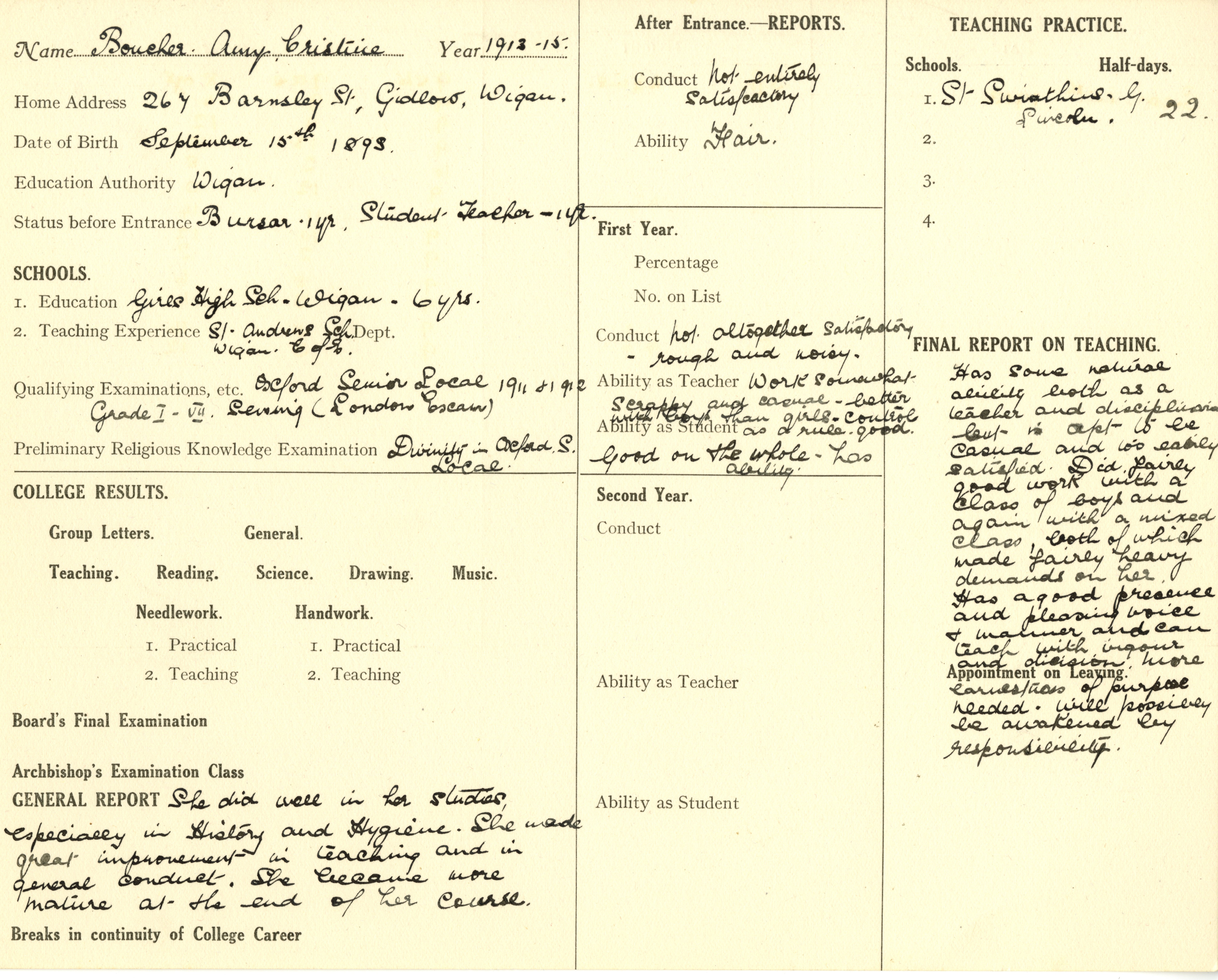 Qualification: Oxford Sen. Local 1911 & 1912.