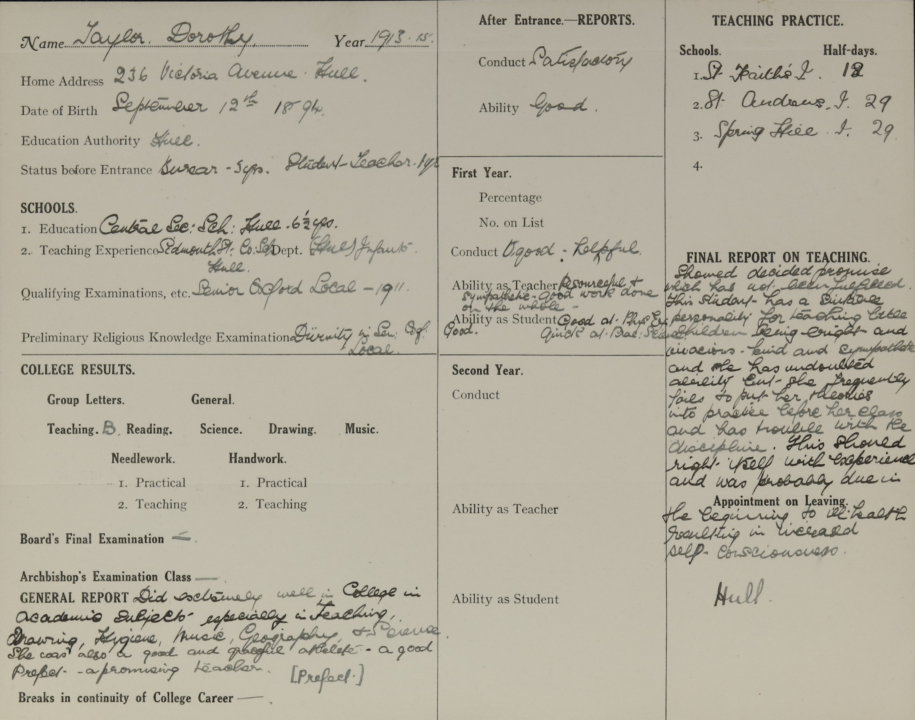Born: 12 September 1894, Sculcoates
